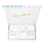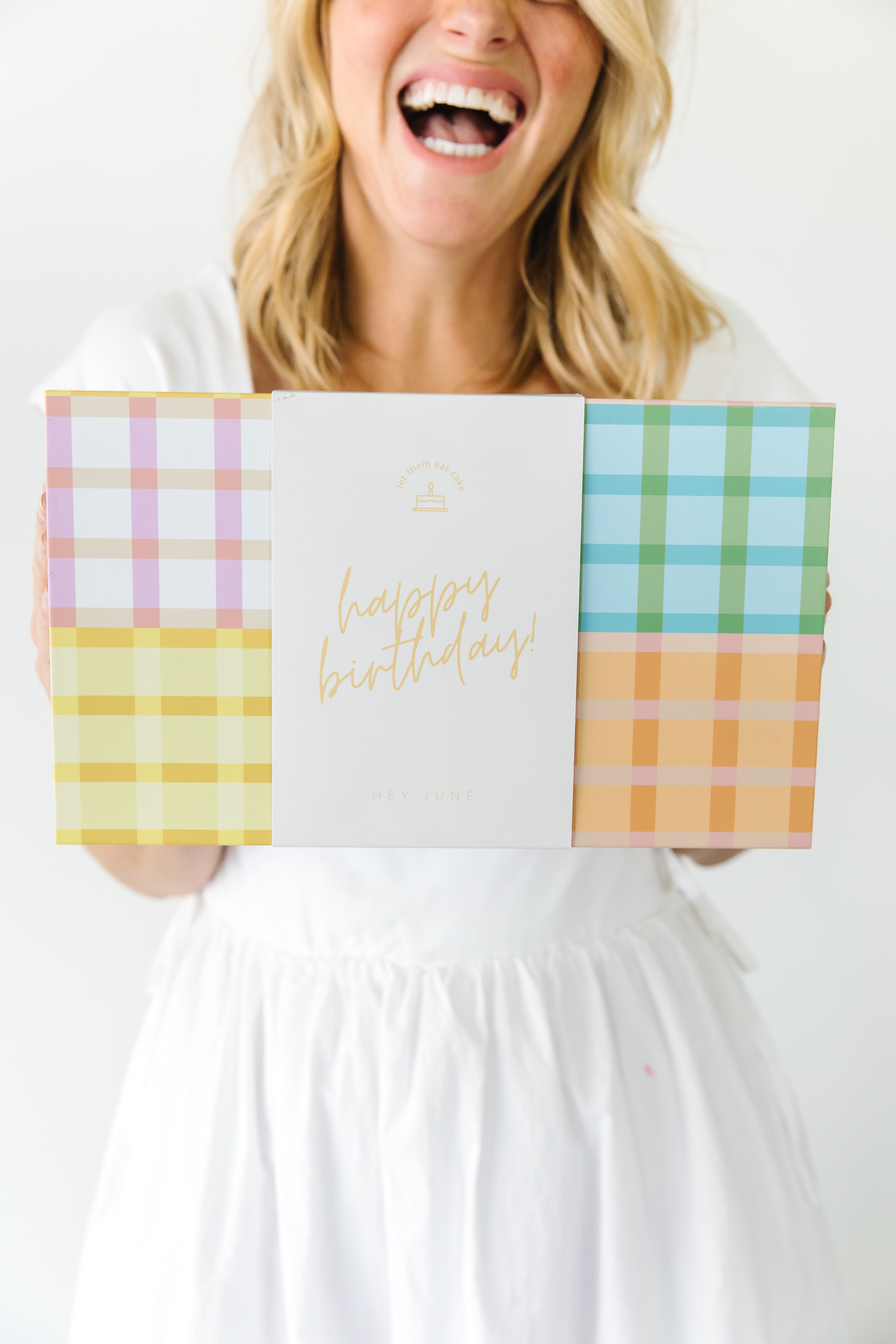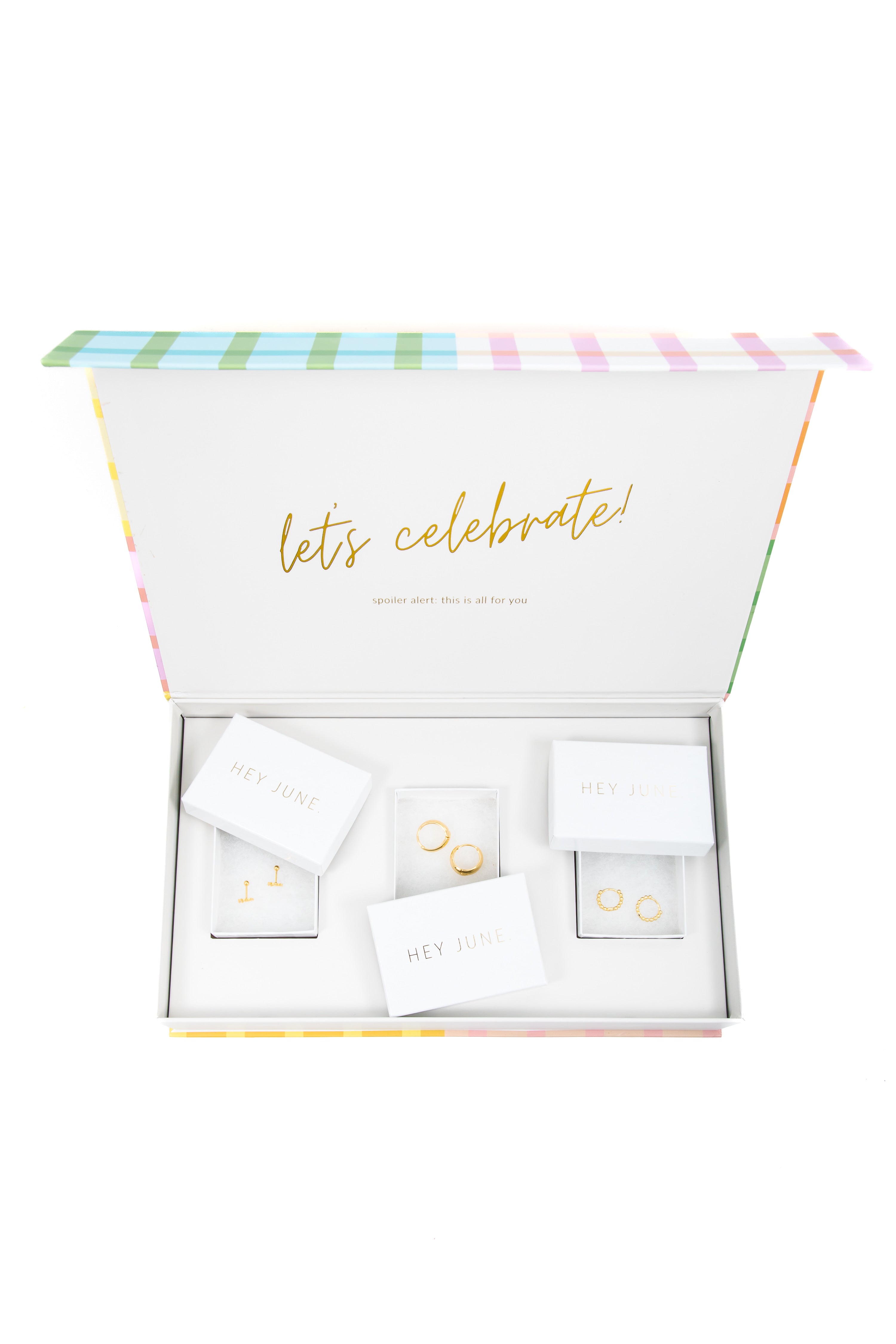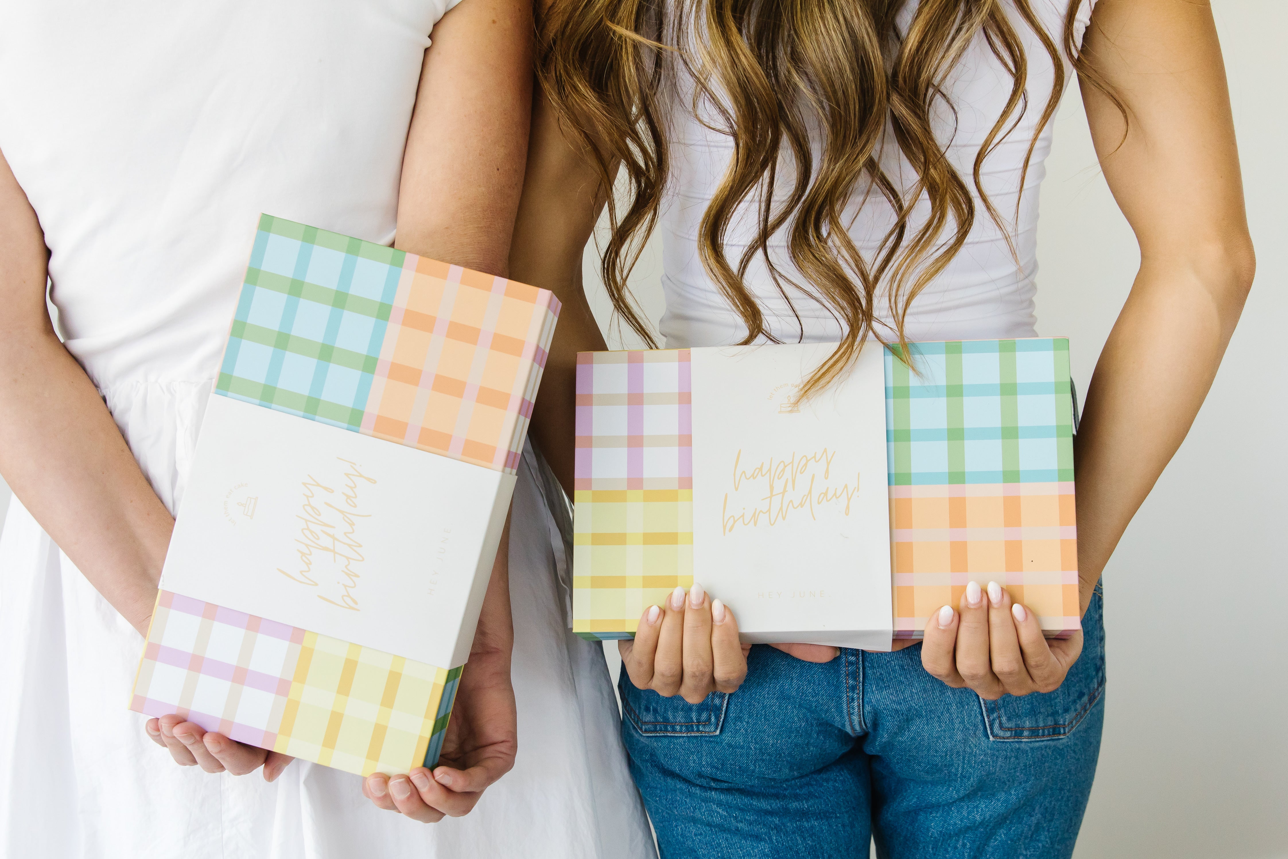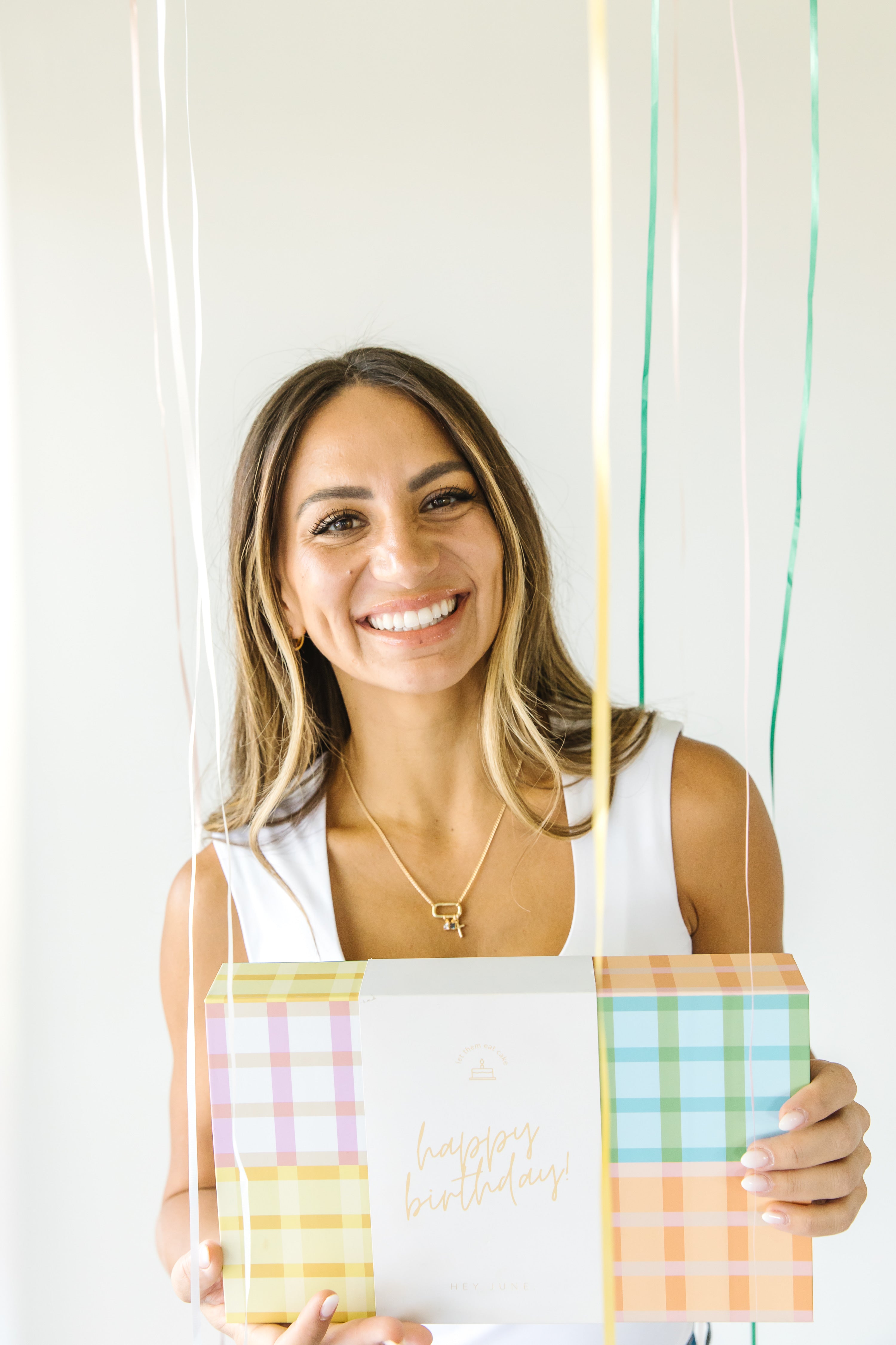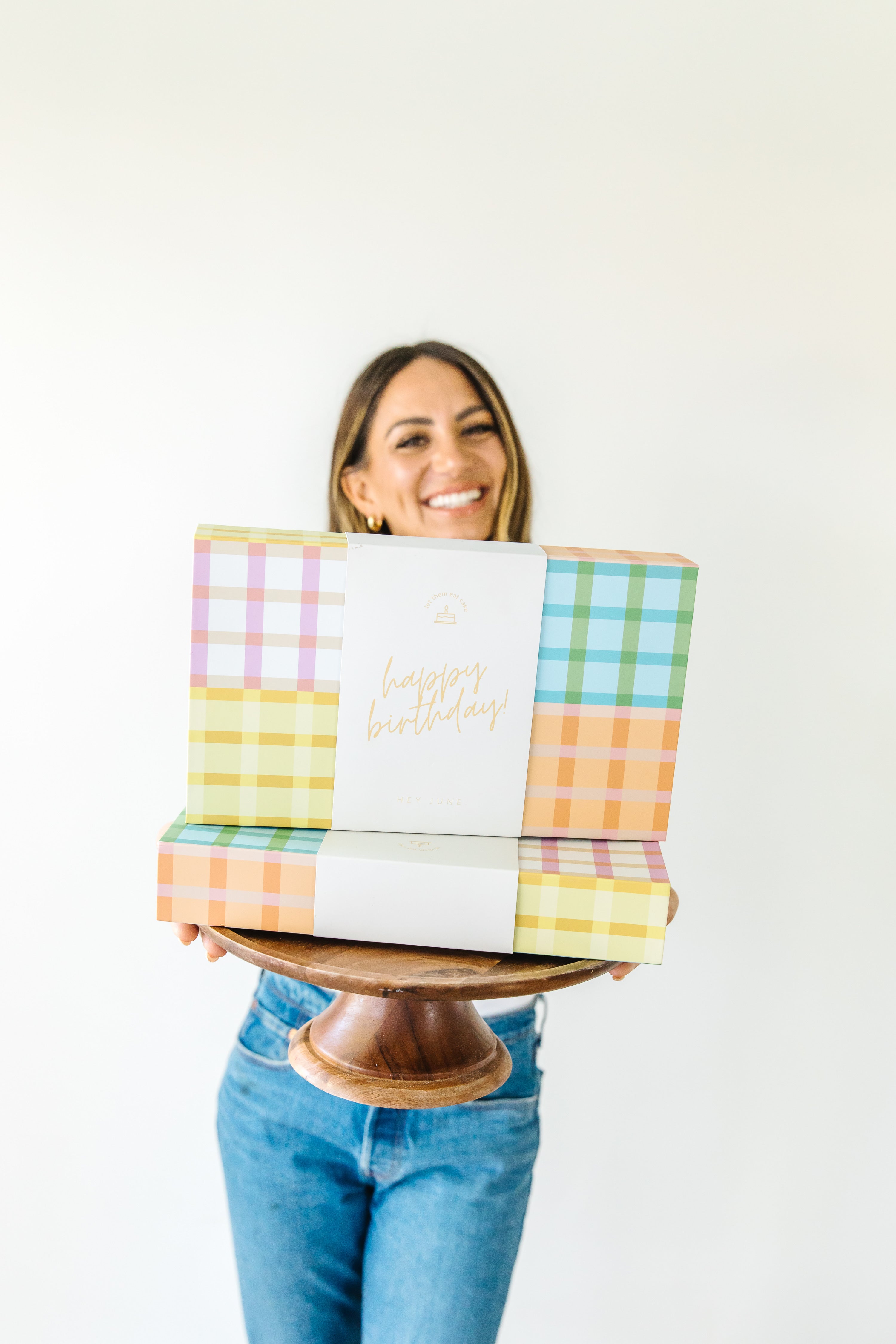 And of course, we needed the design to scream Hey June.  Full of joy, celebration, and just a touch of sophistication.  The box is so freaking cute- it literally looks like it's already wrapped.  Girlfriend, you don't gotta do a thing!