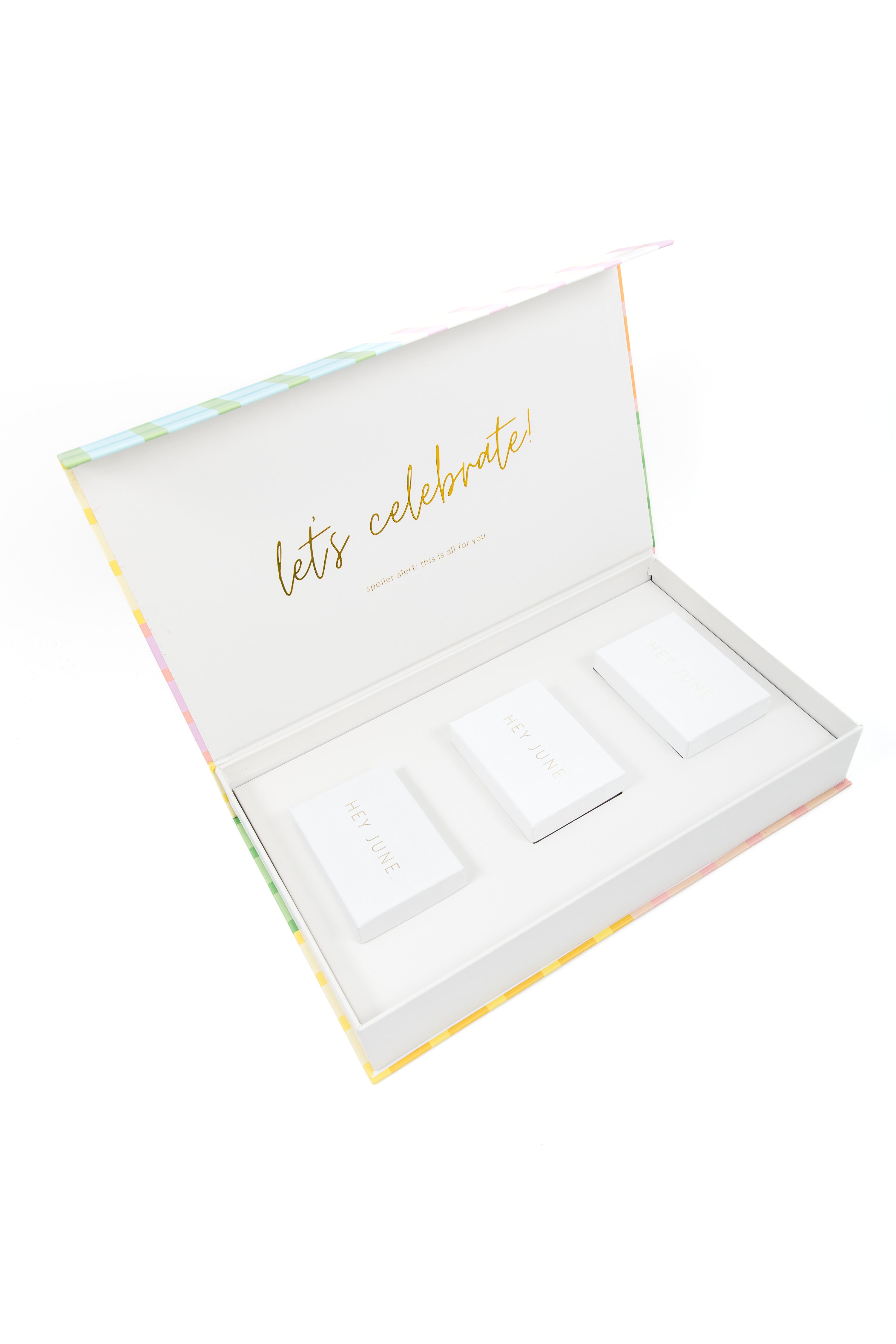 🎂 You select from our drop down menu three favorites from Hey June’s collection.  (We filled it with our most popular and beloved jewelry.)