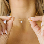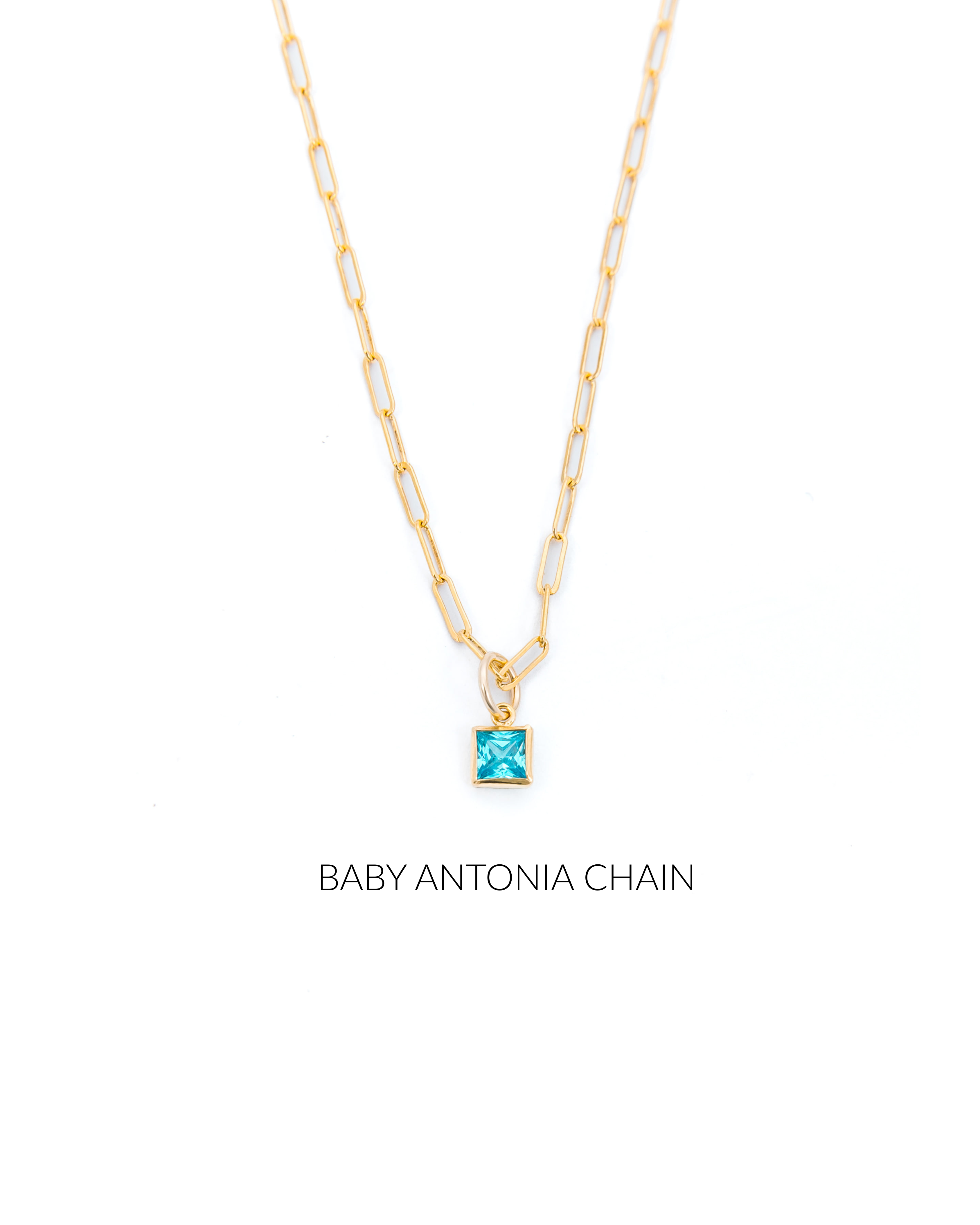 I am so proud to present our 10 year anniversary edition of the birthstone necklace.  At 4 mm each, these birthstones are the perfect size- delicately tiny but still noticeable and stunning.  Wear them alone, stack them, add them to our Hooking Up necklace, the options are endless.