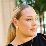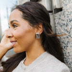 • Statement studs with an edge.  Extremely lightweight and completely steal the show.