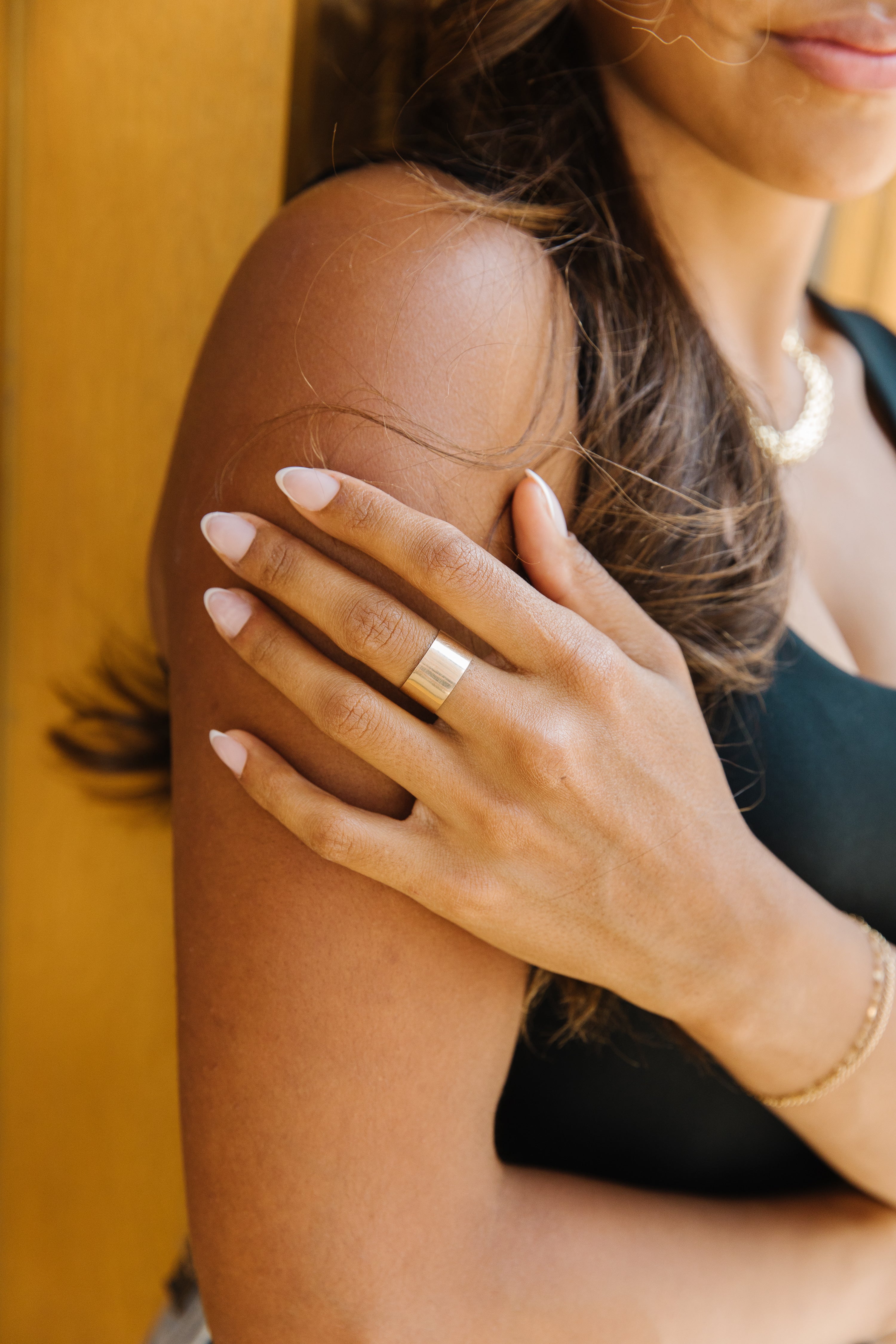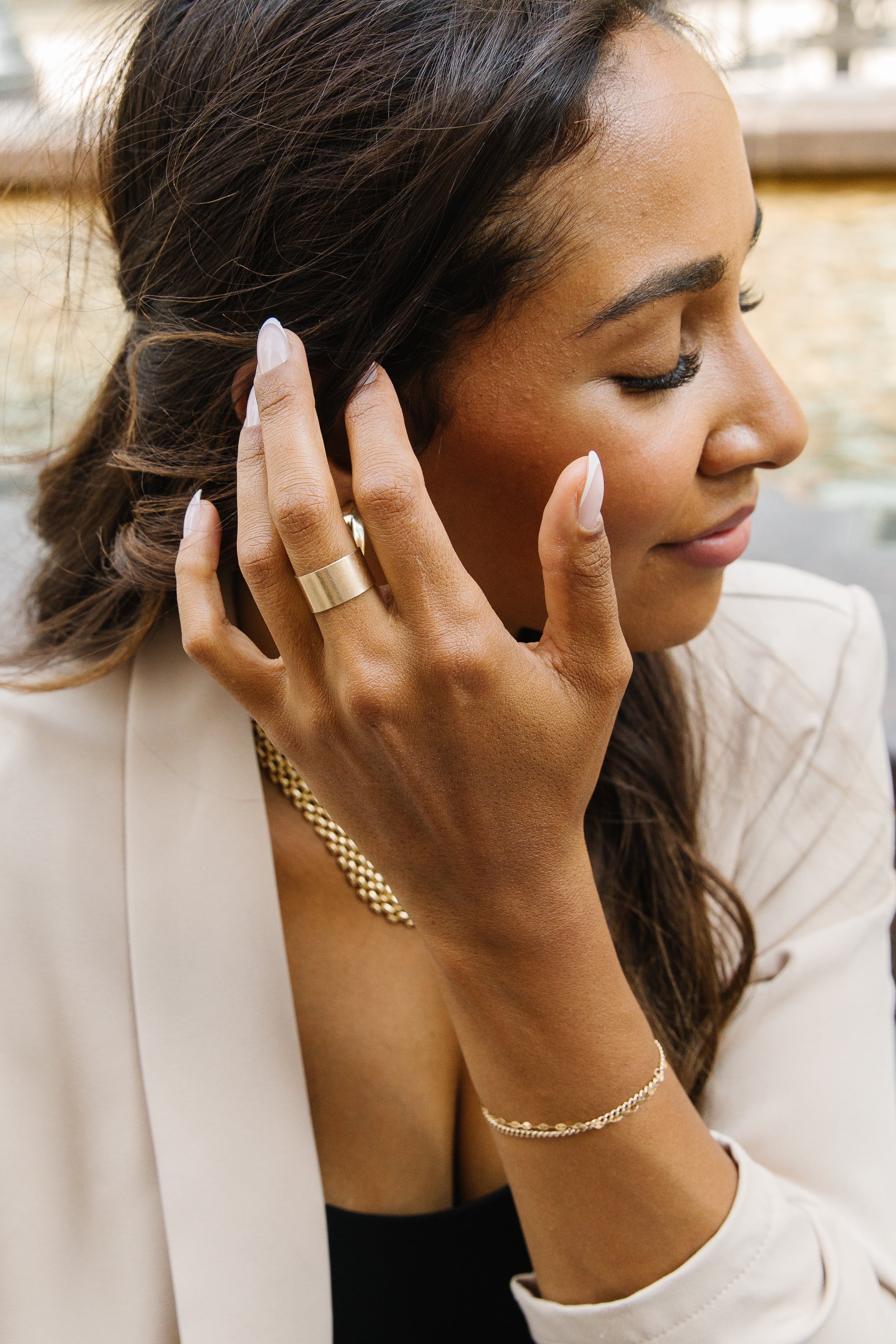 • Model is also wearing hammered cigar ring, boyfriend ring, and zelda ring.