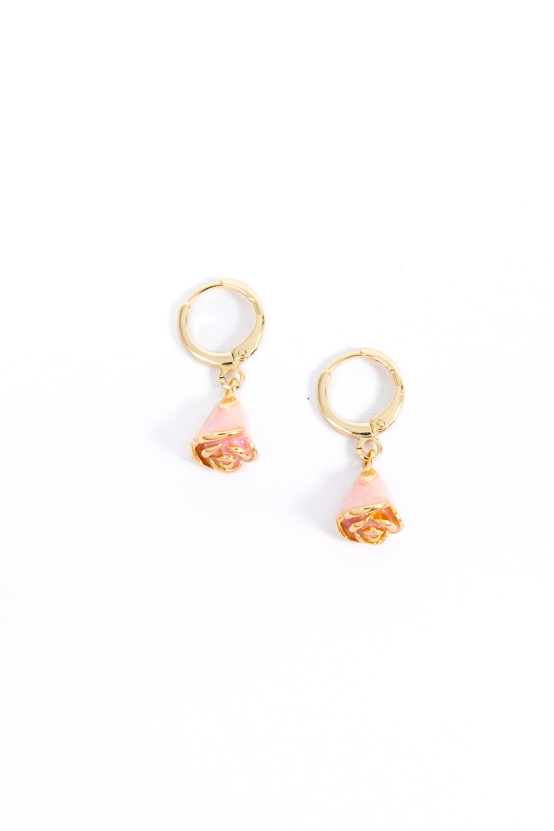 • 11 mm open huggie clasp, rose is 12 x 9 mm.