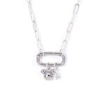 • Necklace has no back clasp. The carabiner in the front is the only way to get the necklace on or off.
