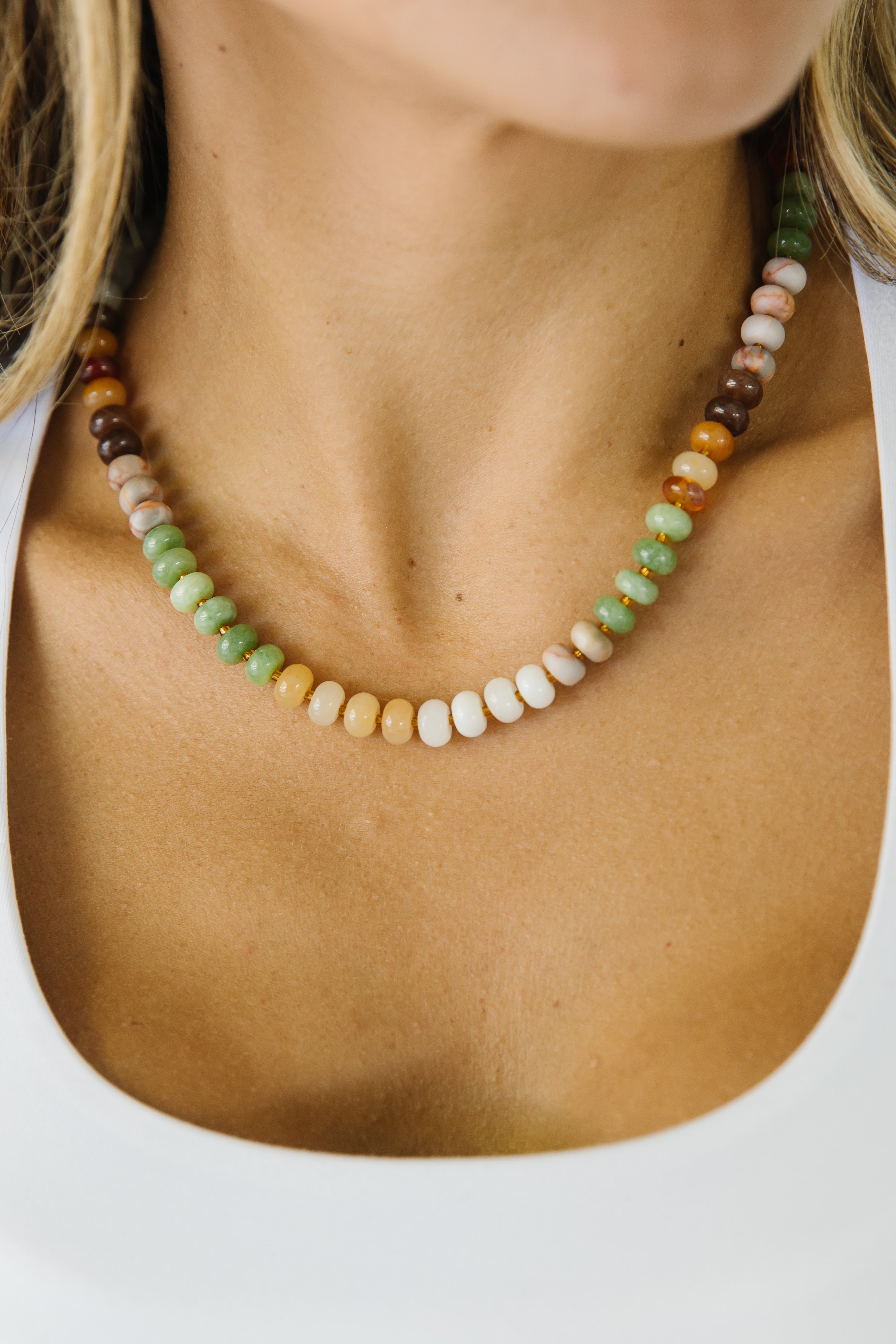 Give a subtle add of color to your fall fits with this playful necklace.  Earth tone gemstones are giving autumn leaves, drives up the canyon, pumpkin latte, and cinnamon pinecone candles on repeat.  We're obsessed with the gradient on these!