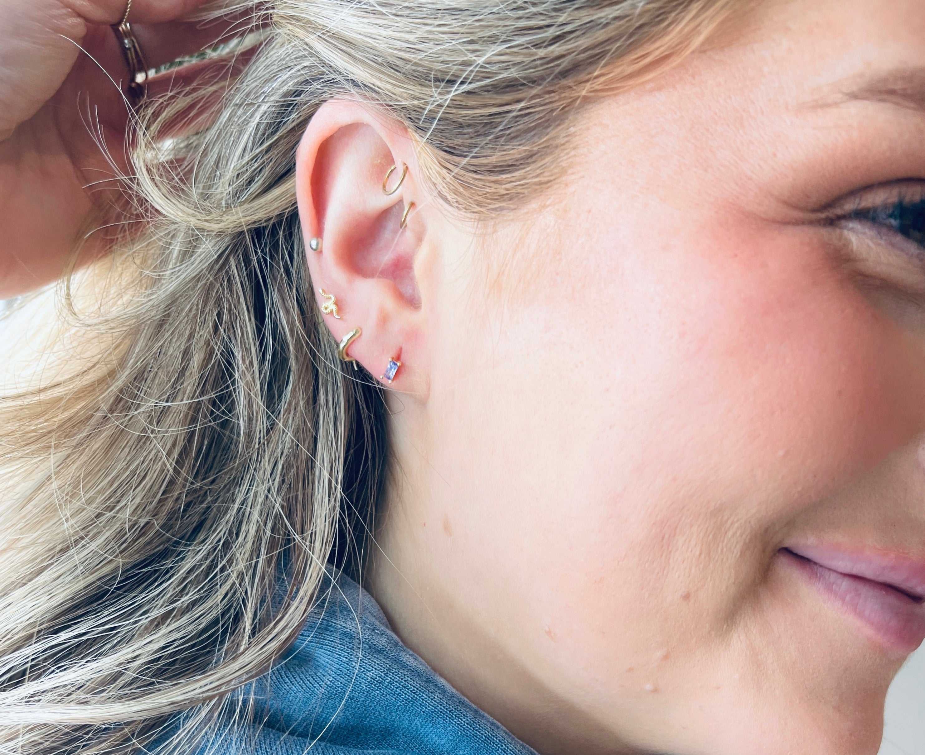 NOTE:  Due to a thicker gauge on the screwback post, screwbacks are great earrings for fully healed piercings. WE RECOMMEND WAITING 6-12 MONTHS BEFORE USING A SCREWBACK ON A NEW PIERCING.