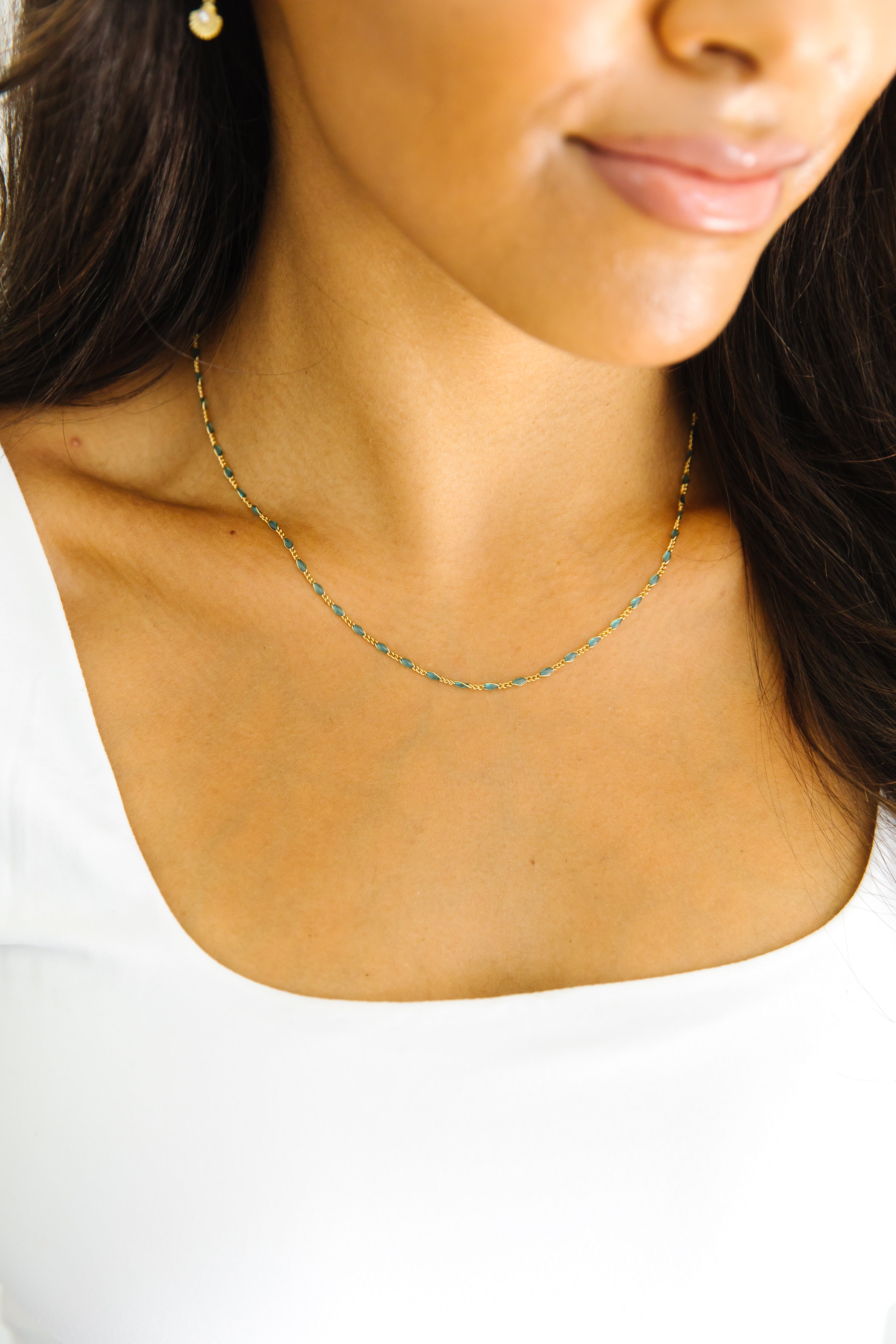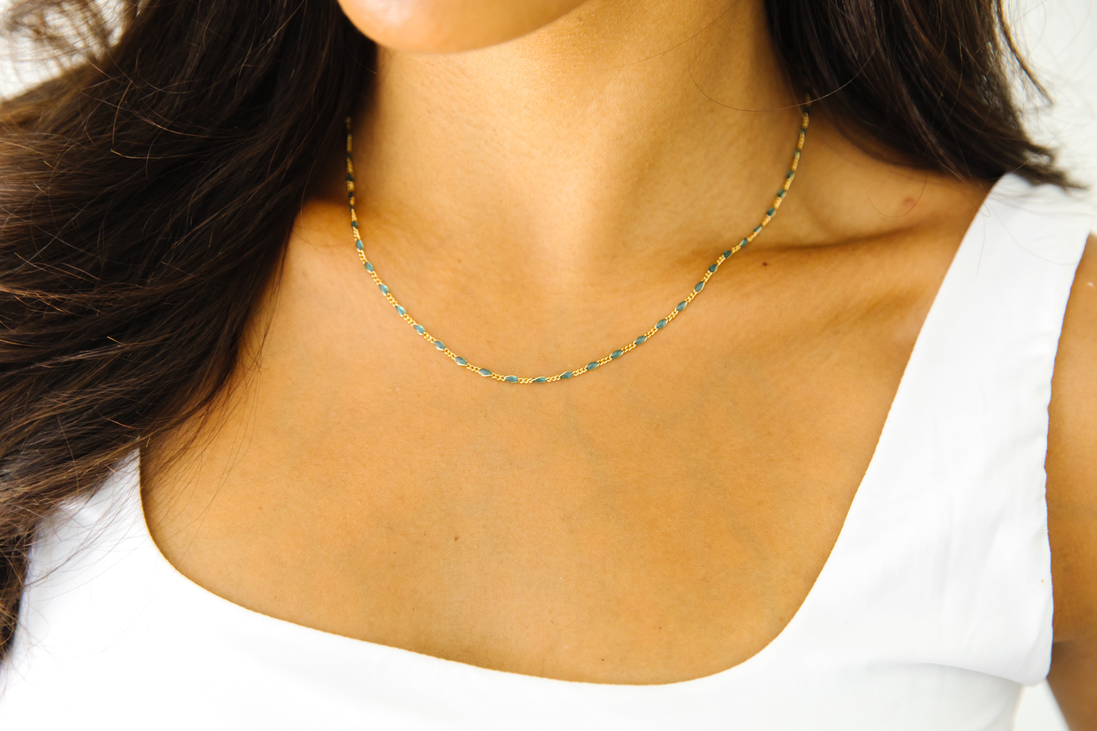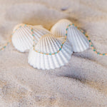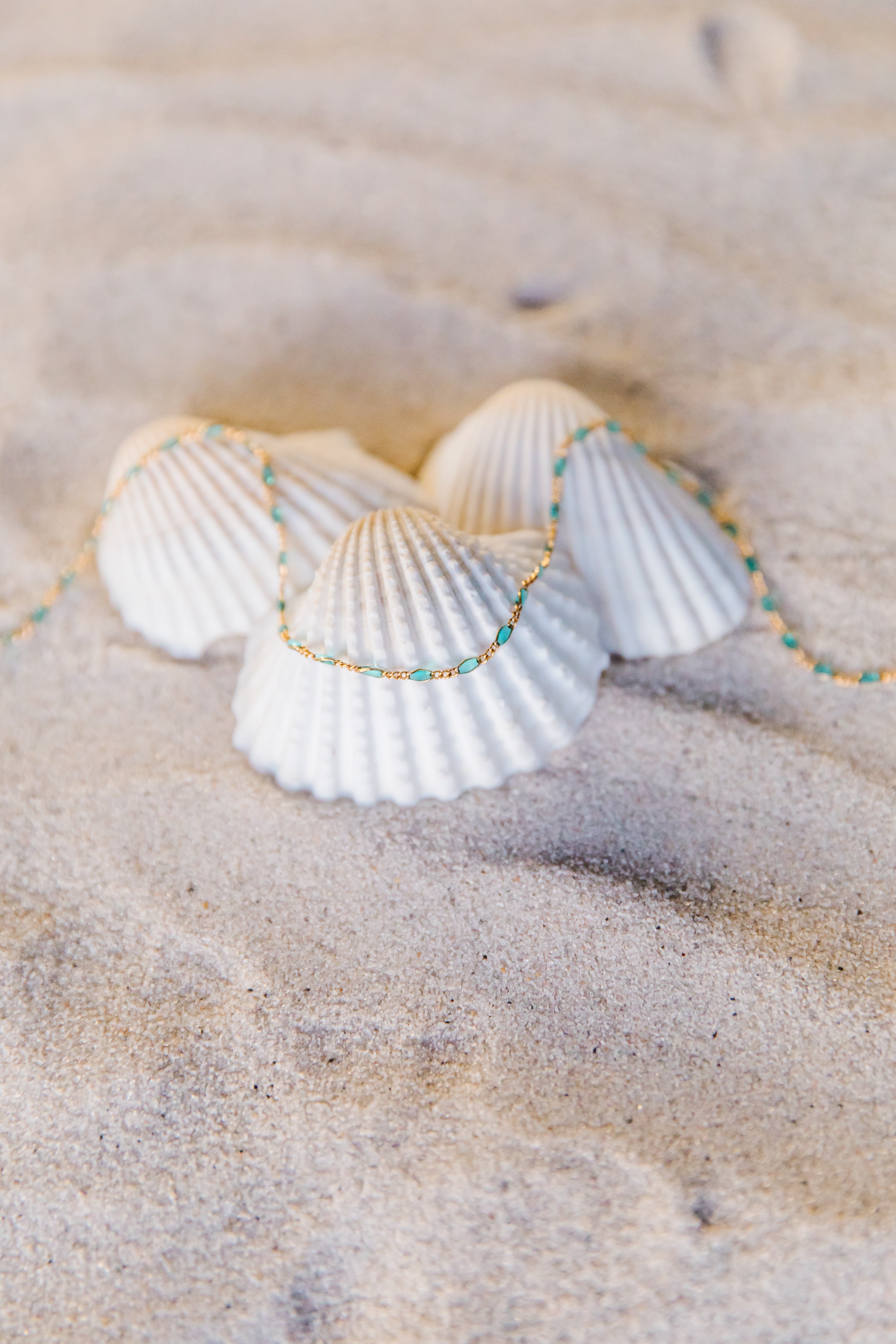 Seaside invites you to lean into rest, calm, and peace this summer.  The softer hues and delicate chains remind us of a moody day by the ocean.  Nothing on the to do list.  The ocean breeze in your hair, and the smell of salt and sand surrounding you.  Rest. Relax.  Stay awhile.