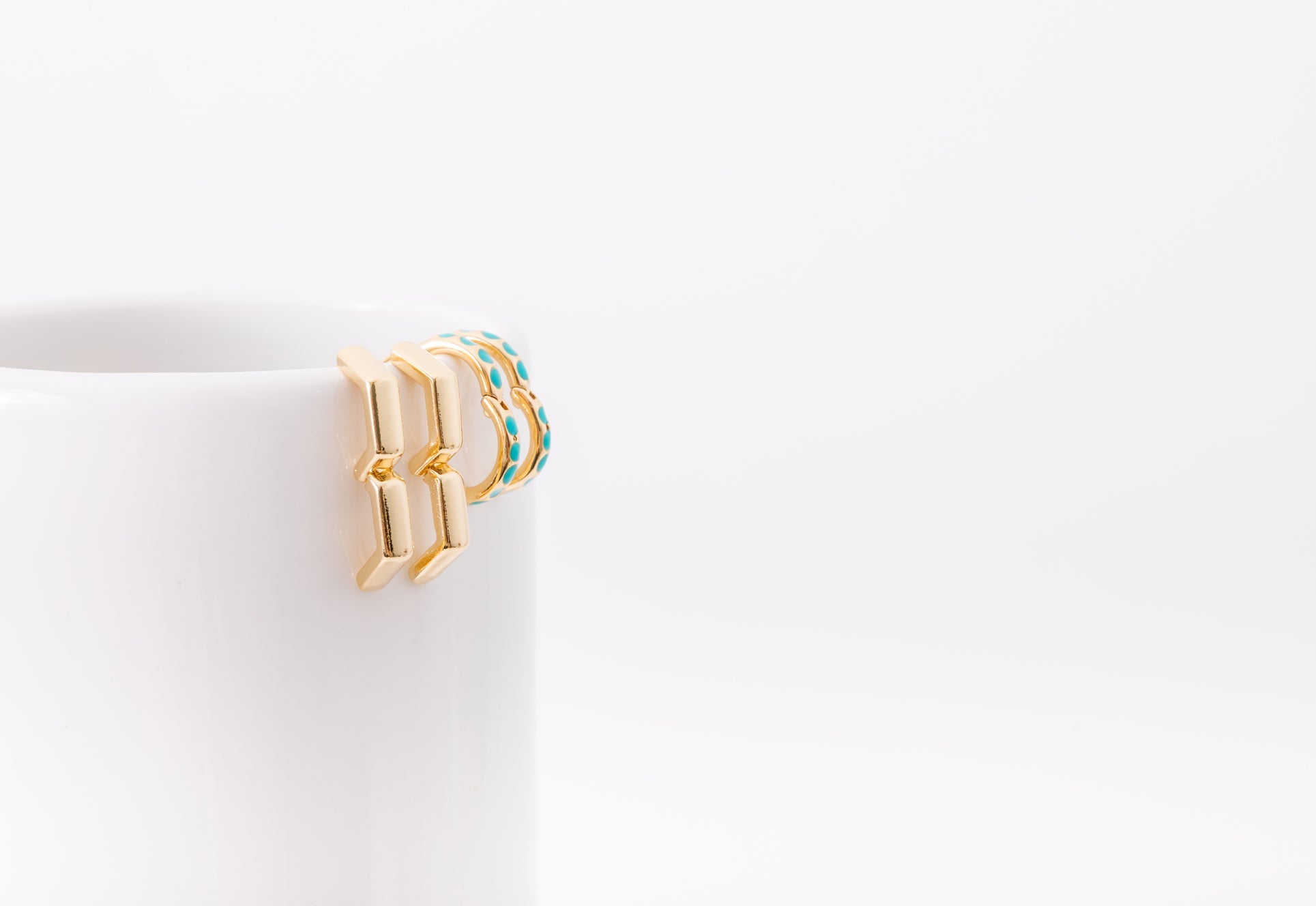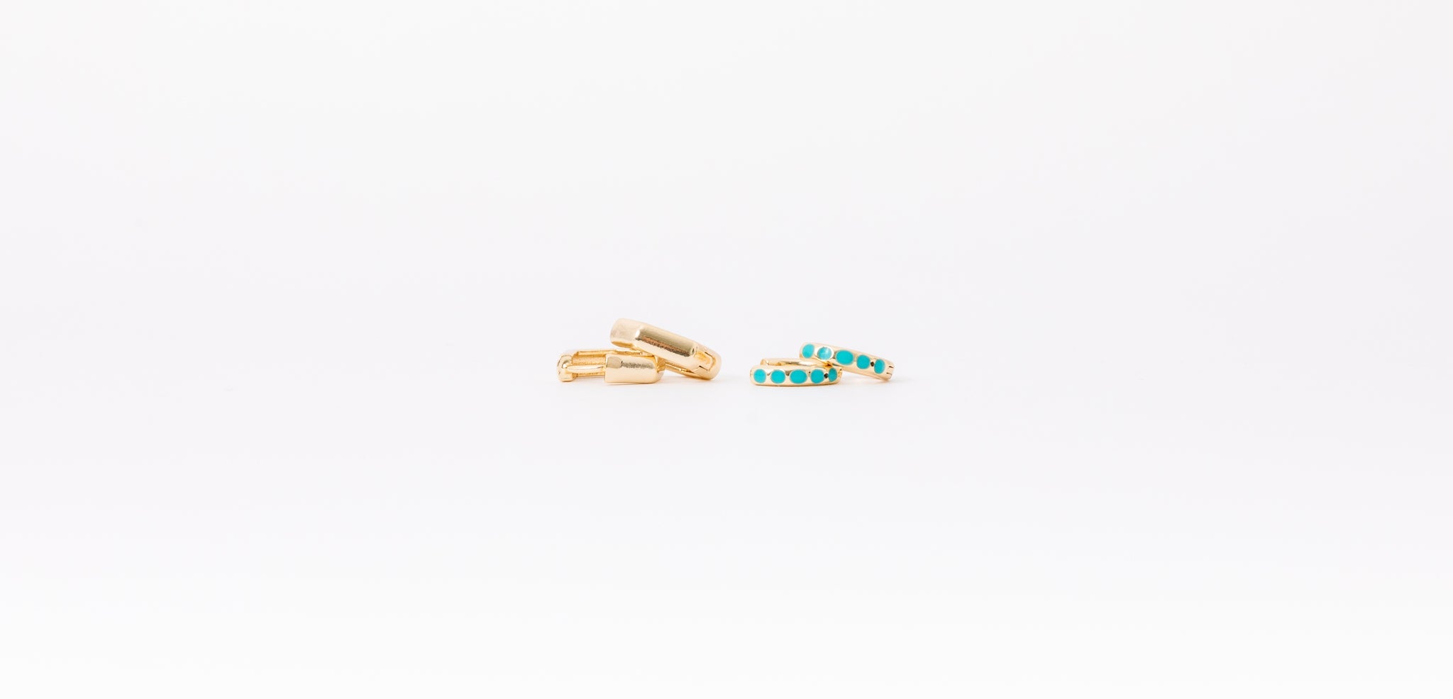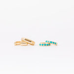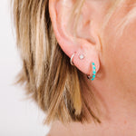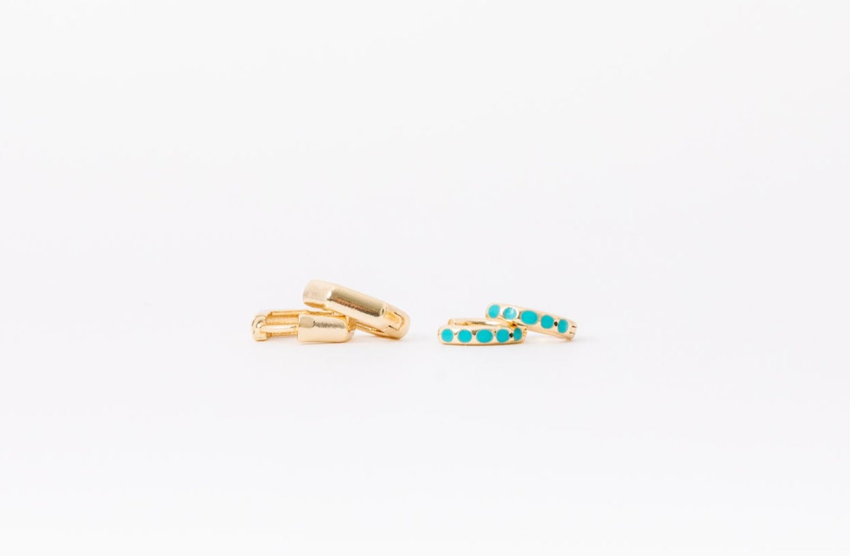 Earring Stack: Turquoise Huggies + Hexagon Huggies