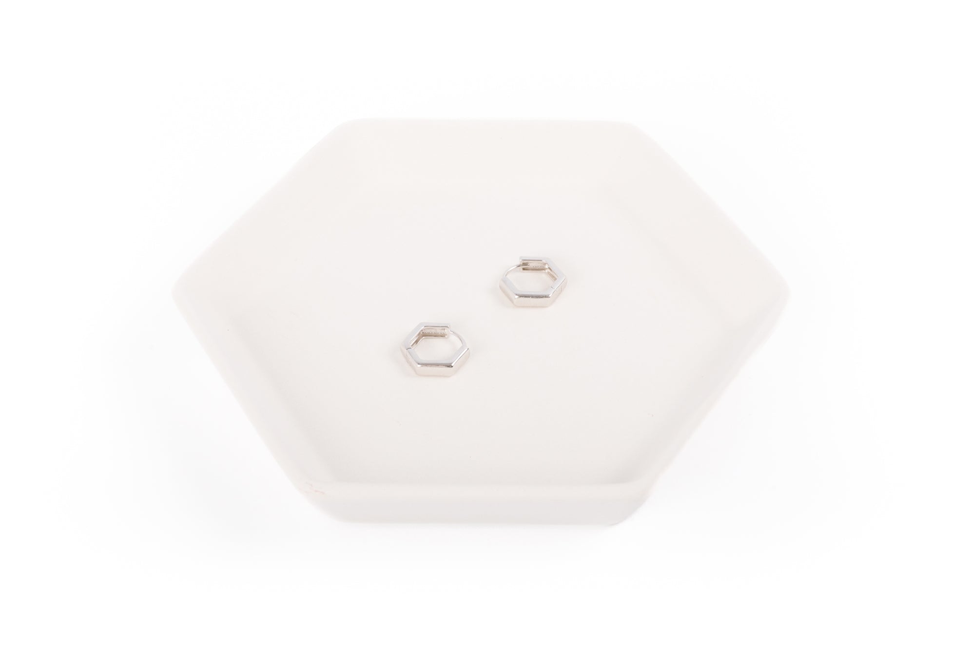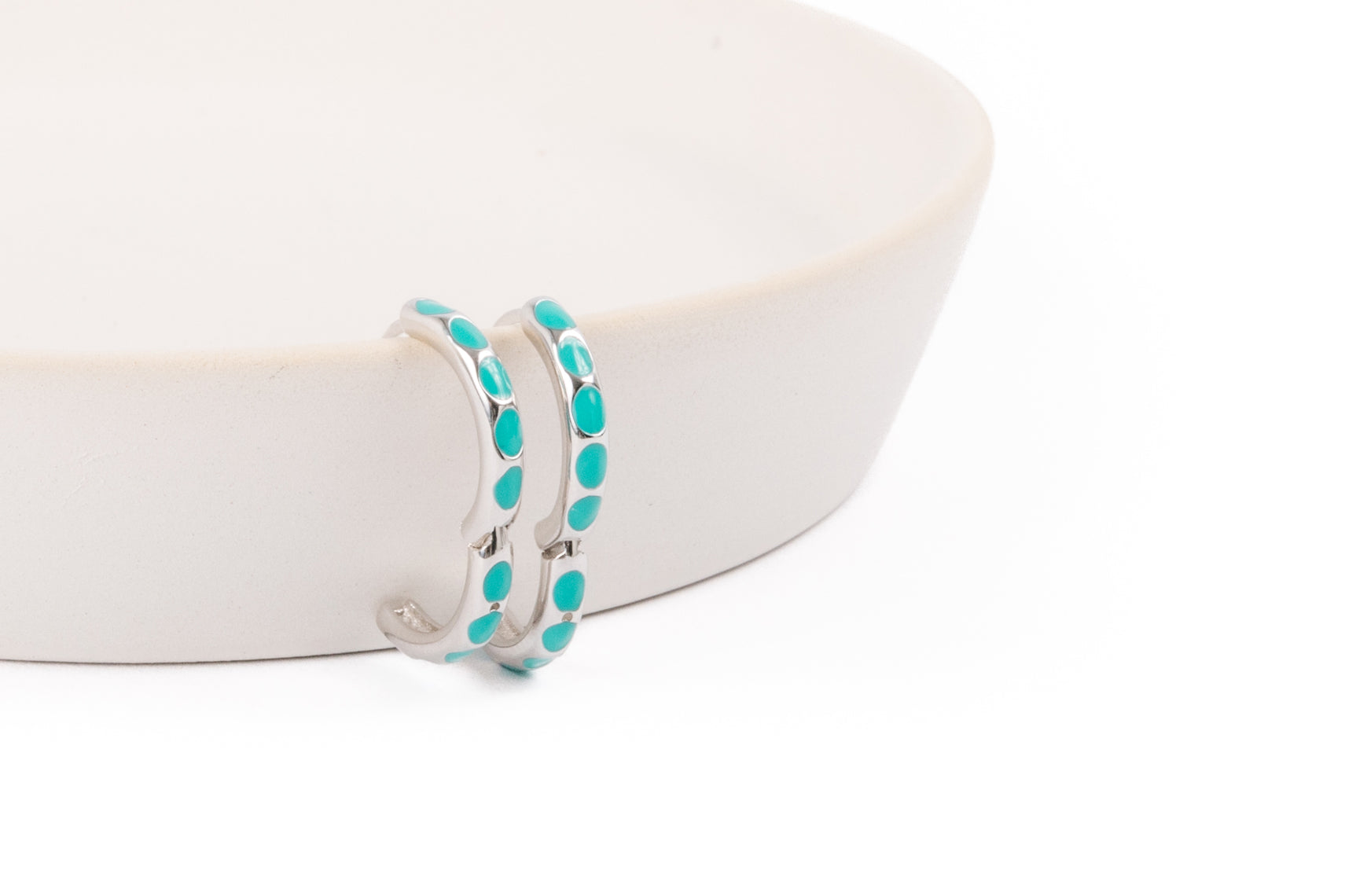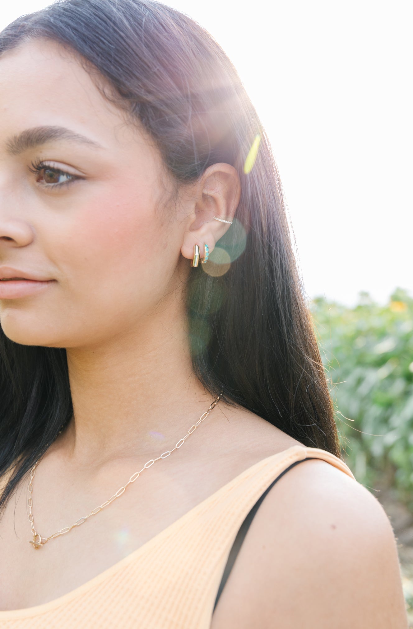 Earring Stack: Turquoise Huggies + Hexagon Huggies