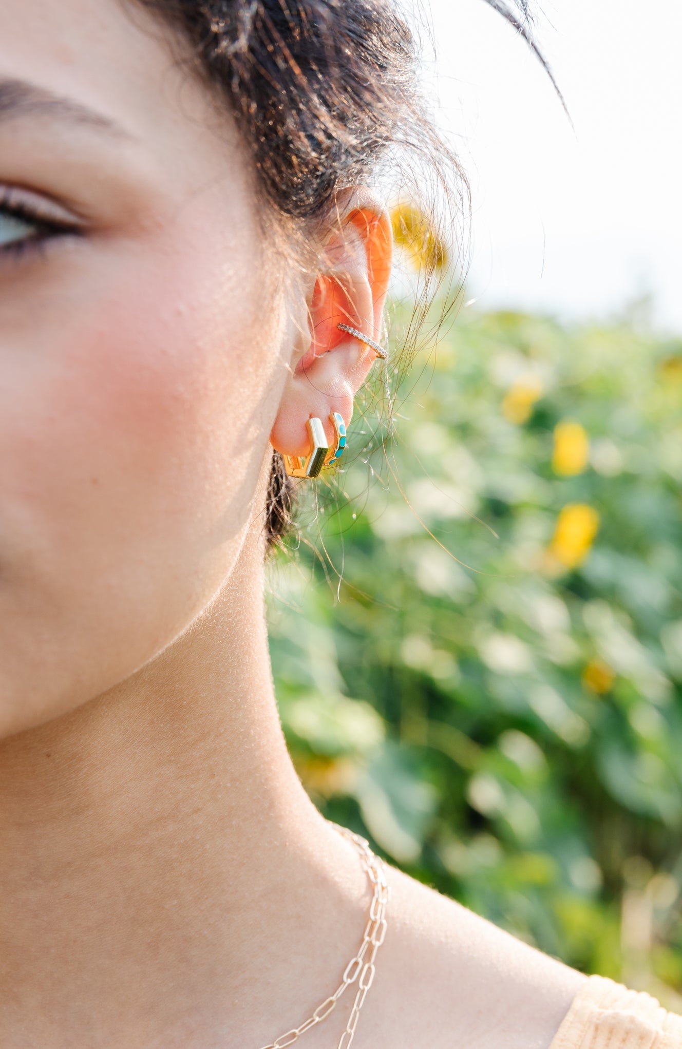 We tested every combination in the book and these are our favorite earring combos.  Wear these earrings all the way up your lobe or mix and match them as you feel.  You do you, boo!