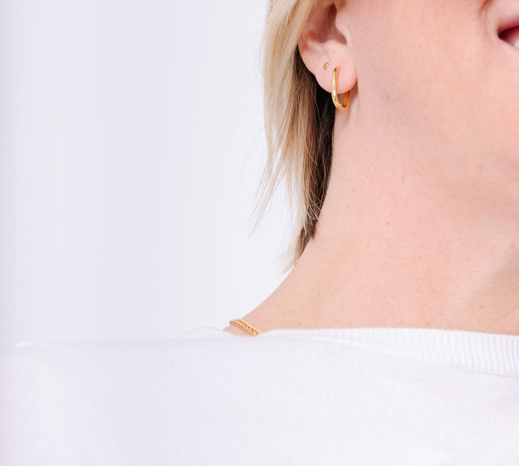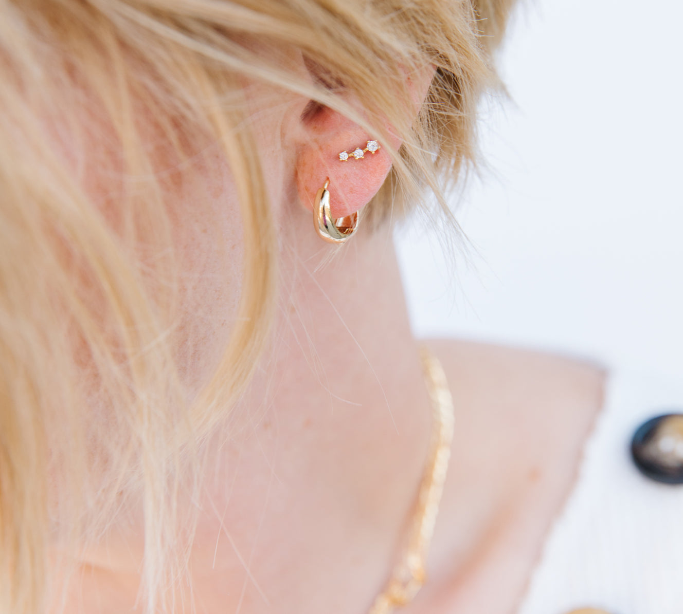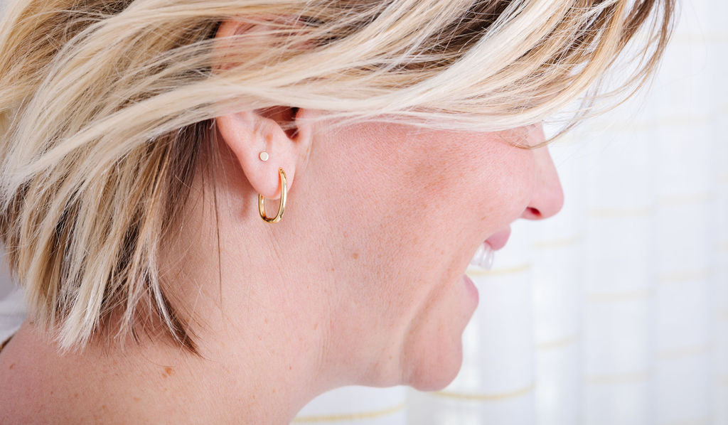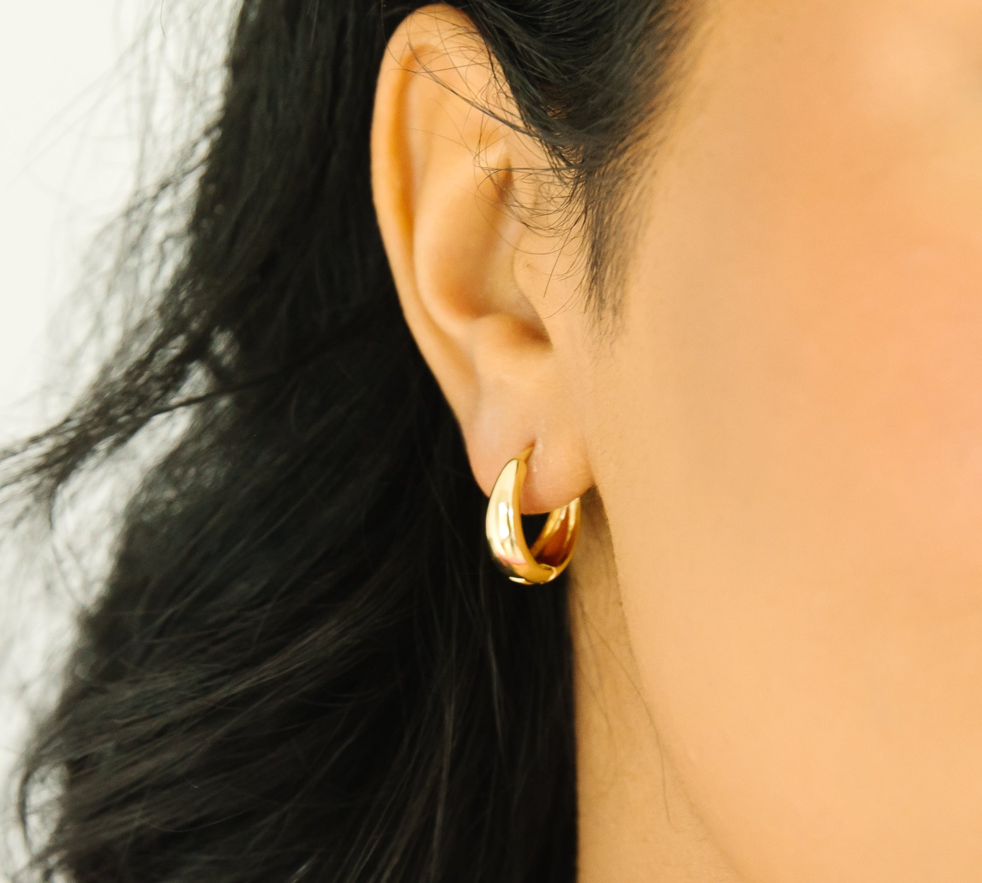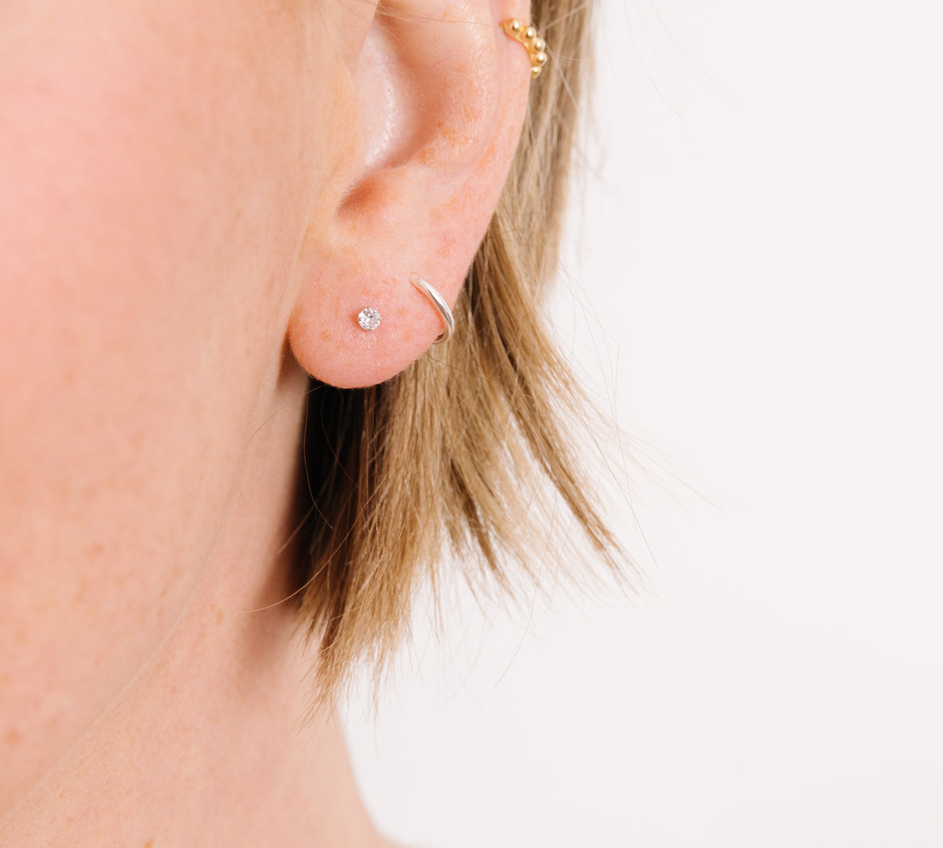 Huggies are hoops with a unique clasp that has no post when earrings are closed. Live and sleep in these!