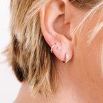 • Post is slightly thicker than our stud earrings.  The majority of customers have no problem with them but if your piercing is very small it may take some wiggling to get the post in.