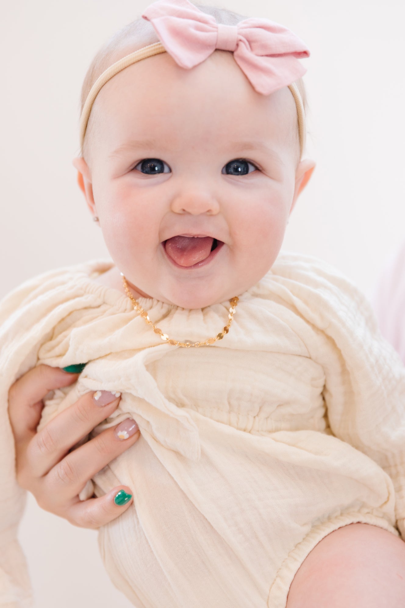 • Please measure your little one's neck ahead of time to get the perfect fit. You can find an easy + convenient tape measure available here.
