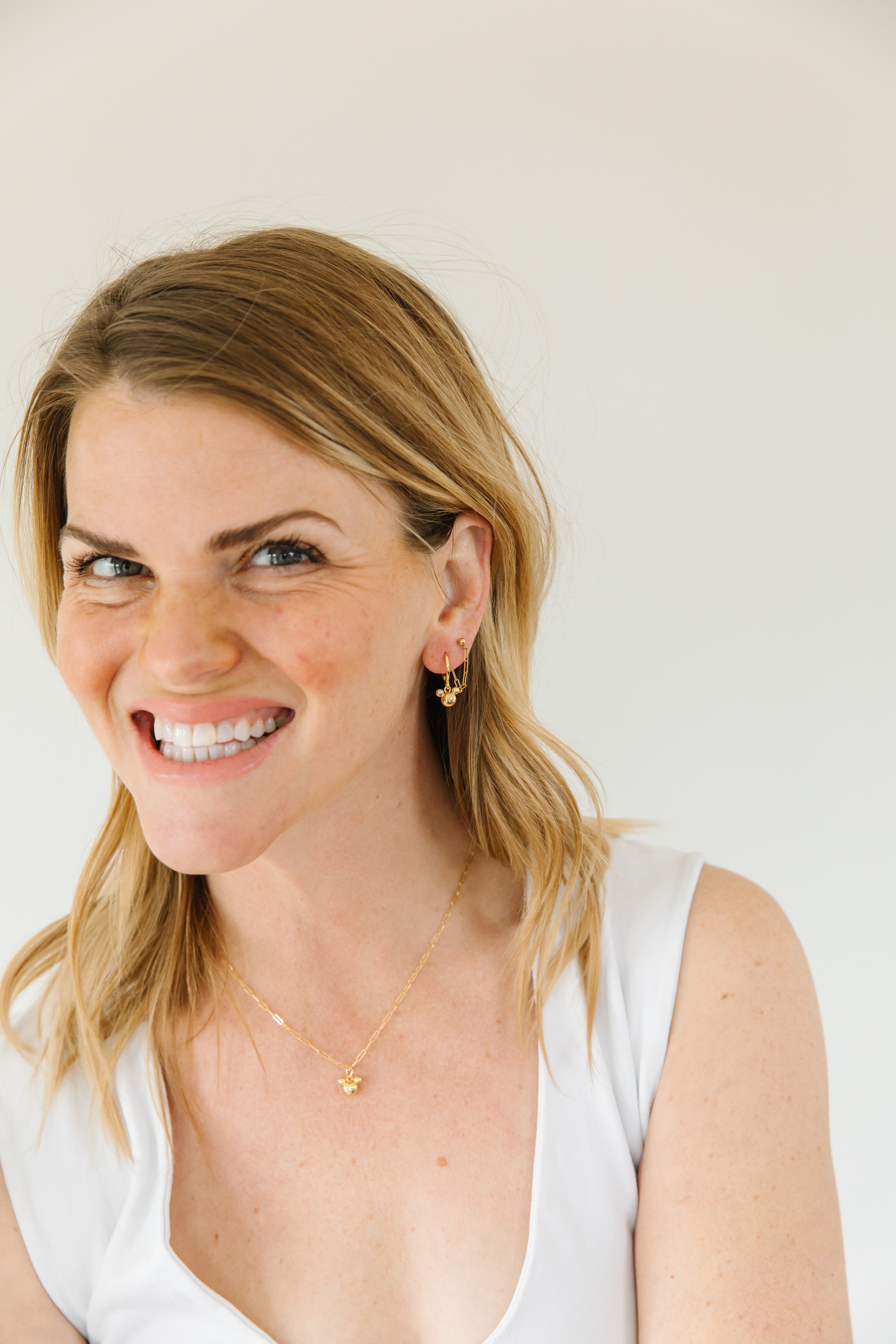 For durability, longevity, and affordability, we sell jewelry that is 14k gold-filled, vermeil, or sterling silver. Different than gold-plated, gold-filled jewelry is a layer of gold bonded through heat to a brass core. Vermeil is the same, but bonded to a a sterling silver core. These metals are durable, hypoallergenic, and tarnish resistant. Your pieces have the power to last a long time! When it comes to quality and durability, only solid gold can beat what we sell. Learn more.