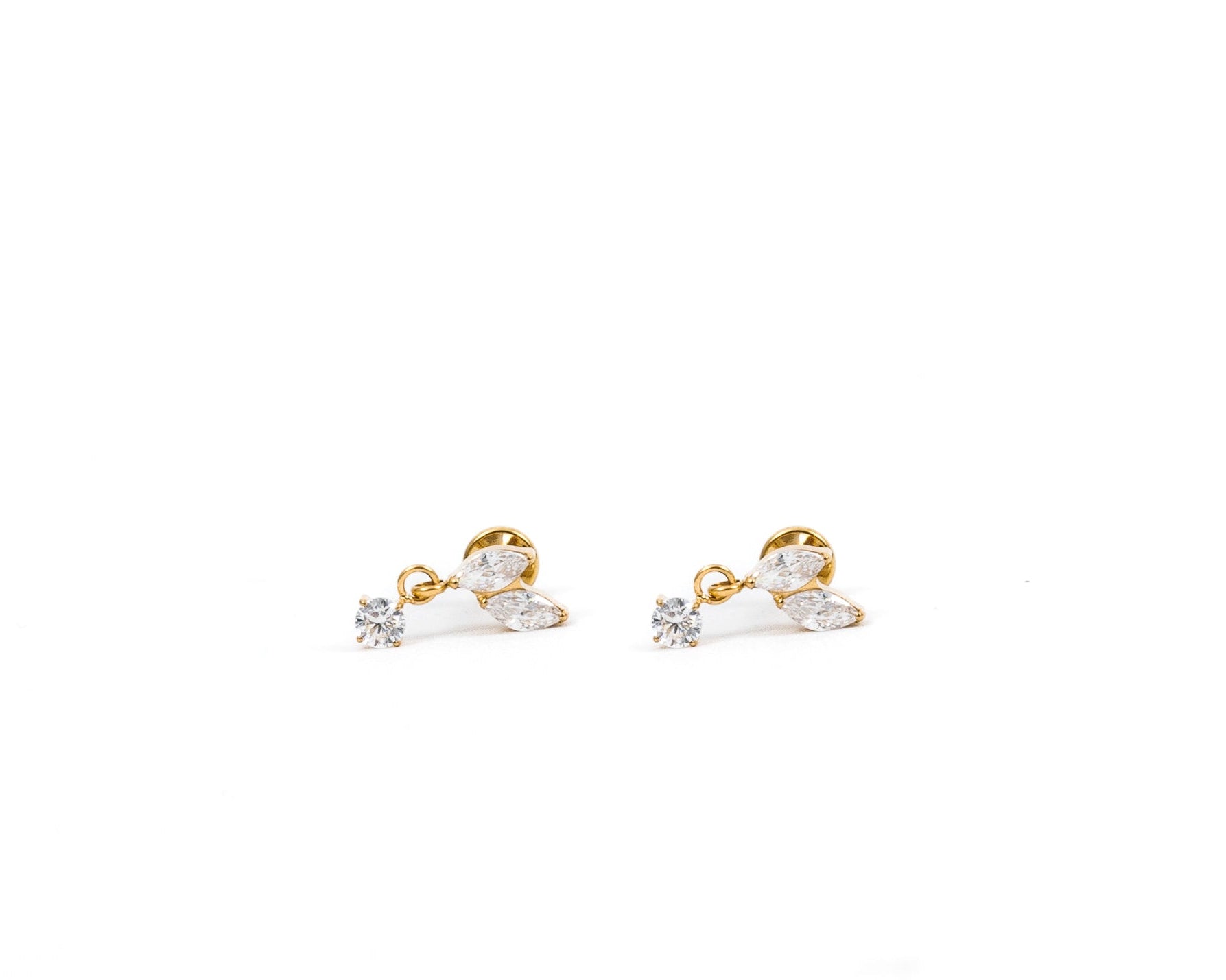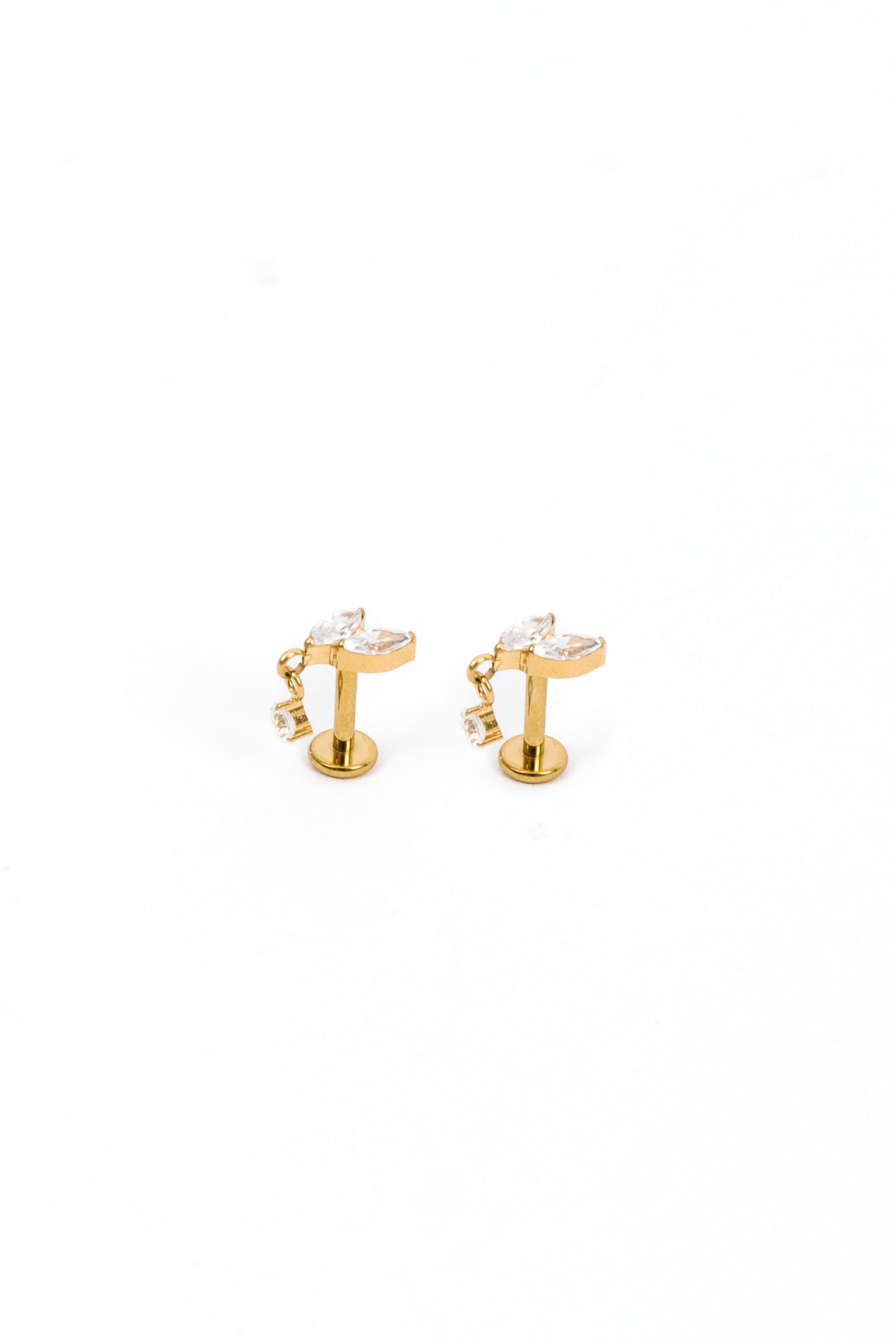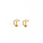 • Earring post is threadless - the post enters your piercing through the back, and the front of the earring fits into the post. Done right, this earring is super secure!