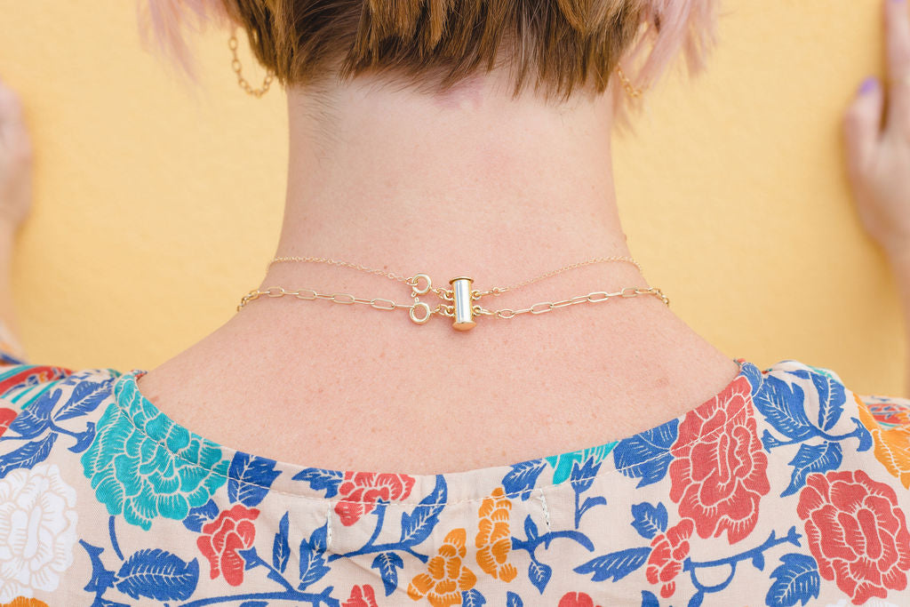 For durability, longevity, and affordability, we sell jewelry that is 14k gold-filled, vermeil, or sterling silver. Different than gold-plated, gold-filled jewelry is a layer of gold bonded through heat to a brass core. Vermeil is the same, but bonded to a a sterling silver core. These metals are durable, hypoallergenic, and tarnish resistant. Your pieces have the power to last a long time! When it comes to quality and durability, only solid gold can beat what we sell. Learn more.