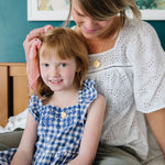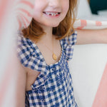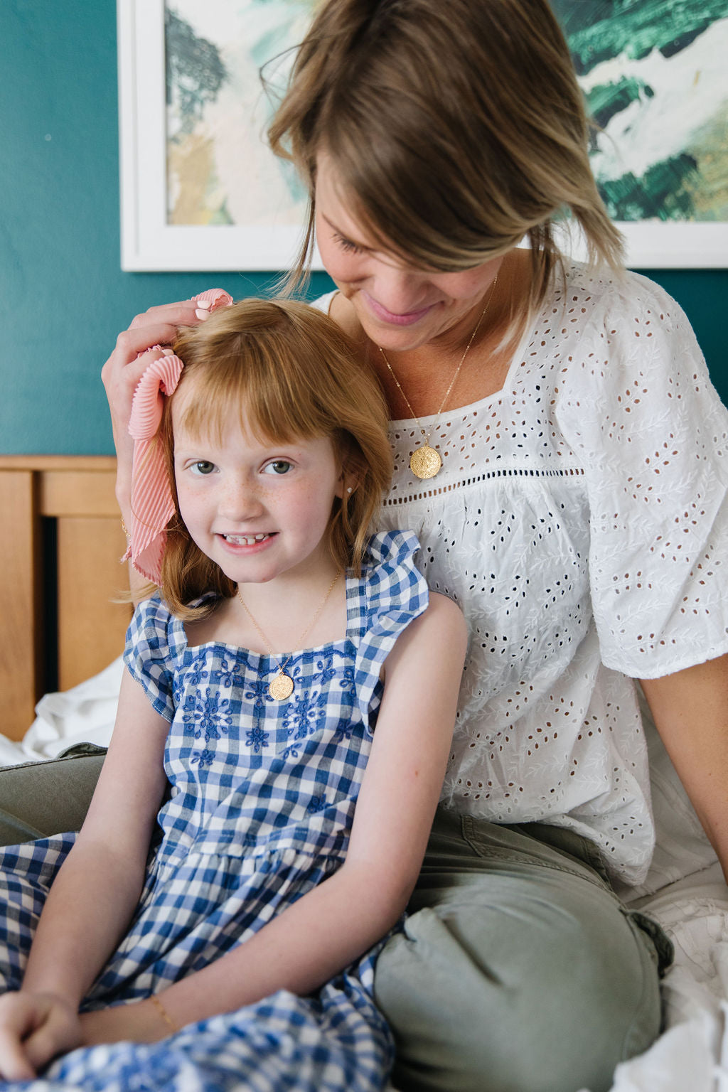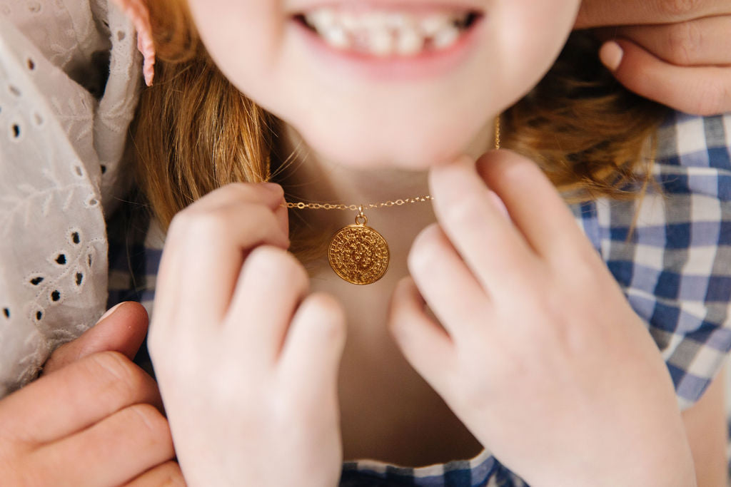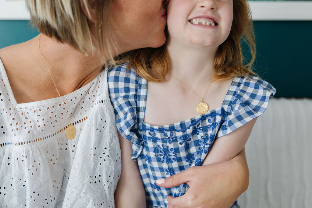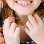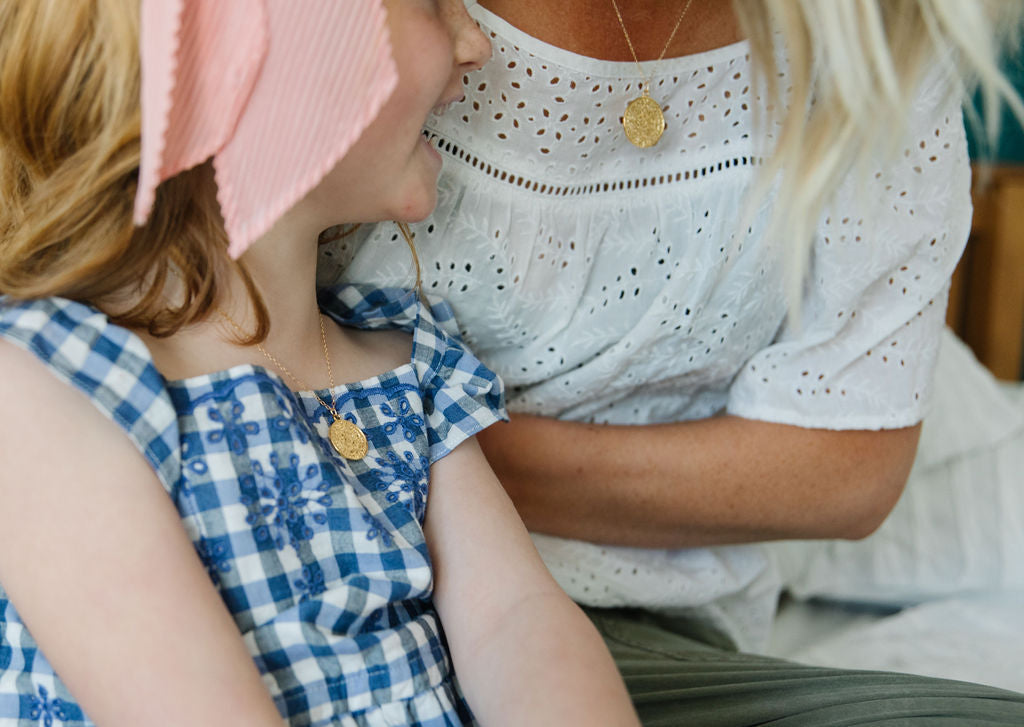 • The adult necklace is on our large Kya charm (1") and the child necklace is on the small Kya charm (.75")