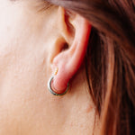 • Having a hard time deciding if you're a silver or a gold girlie?  We got you!  These mixed metal huggies can go in front ways or backwards so you can show whatever metal you're feeling that day!