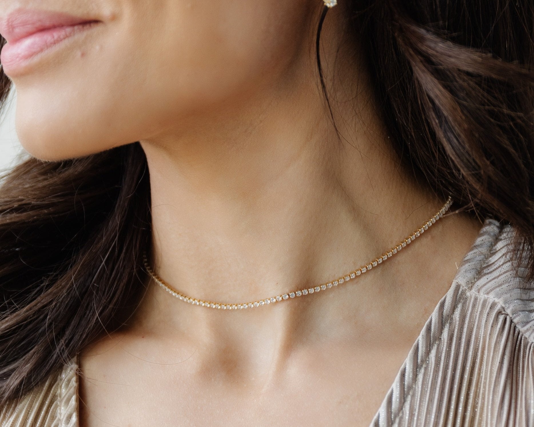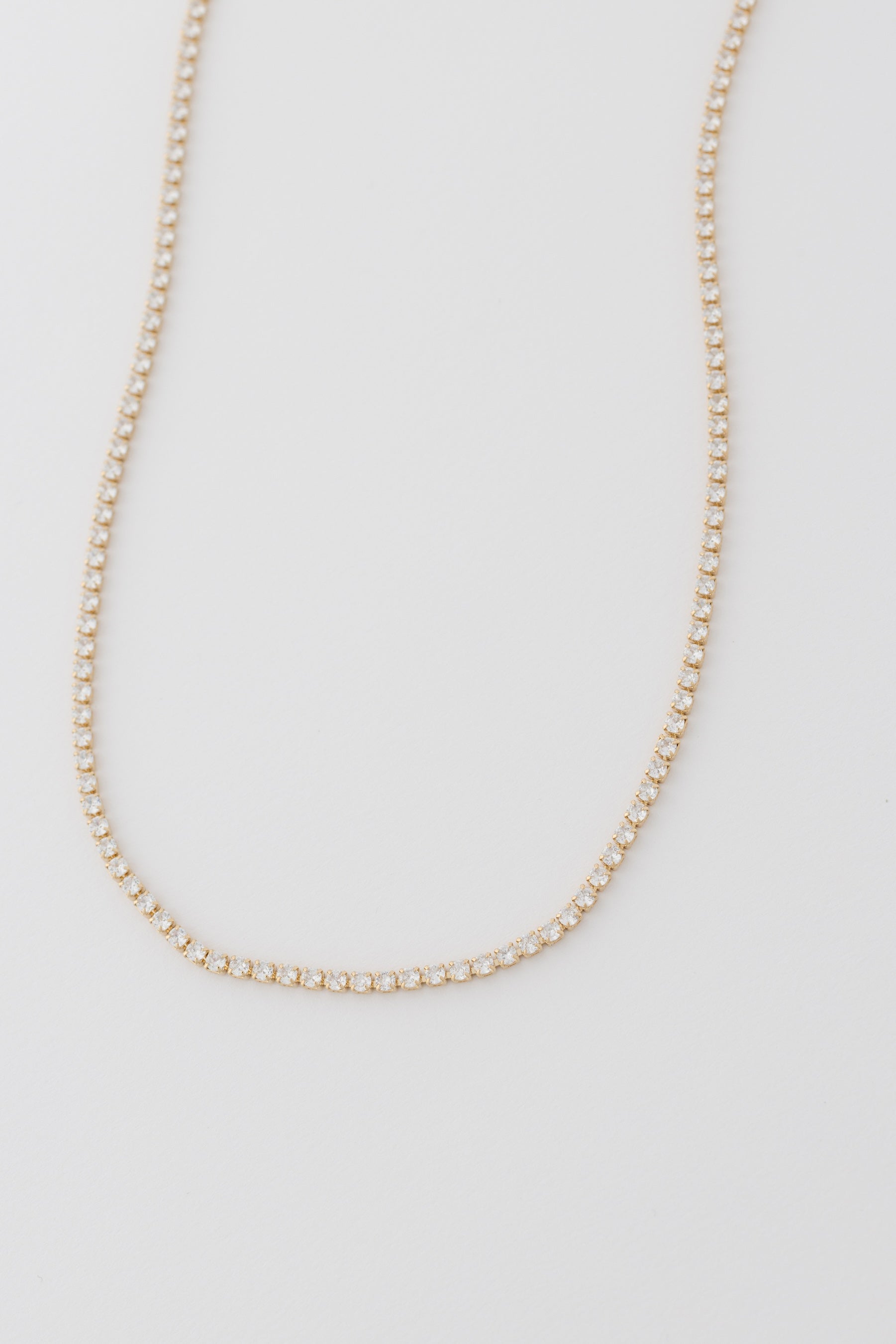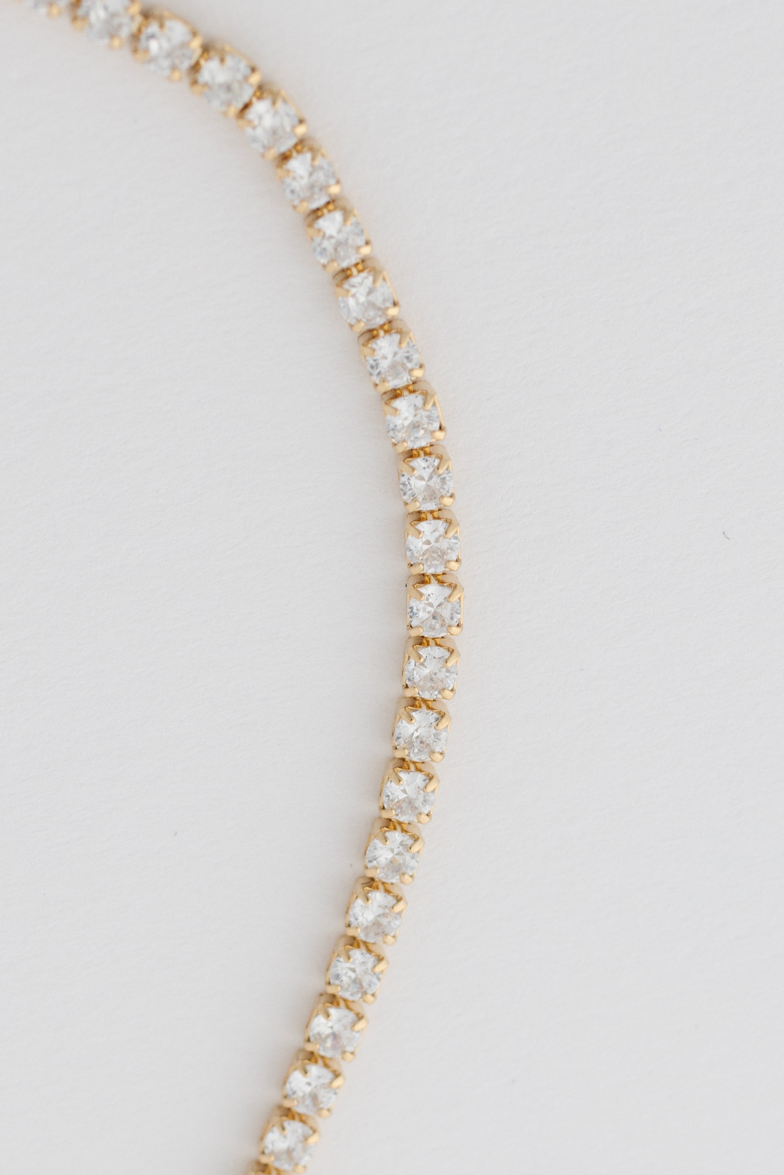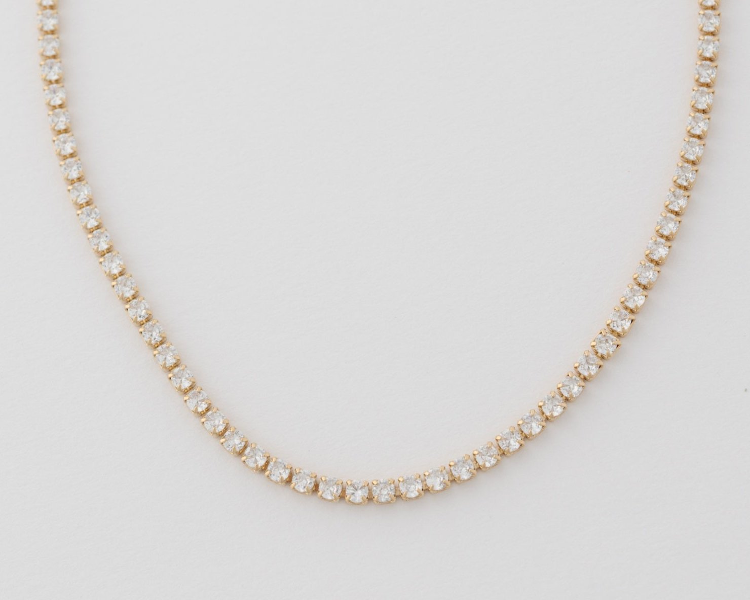 • We're about dang near losing our minds of this simple and stunning tennis necklace, named after none other than the iconic Marilyn Monroe.