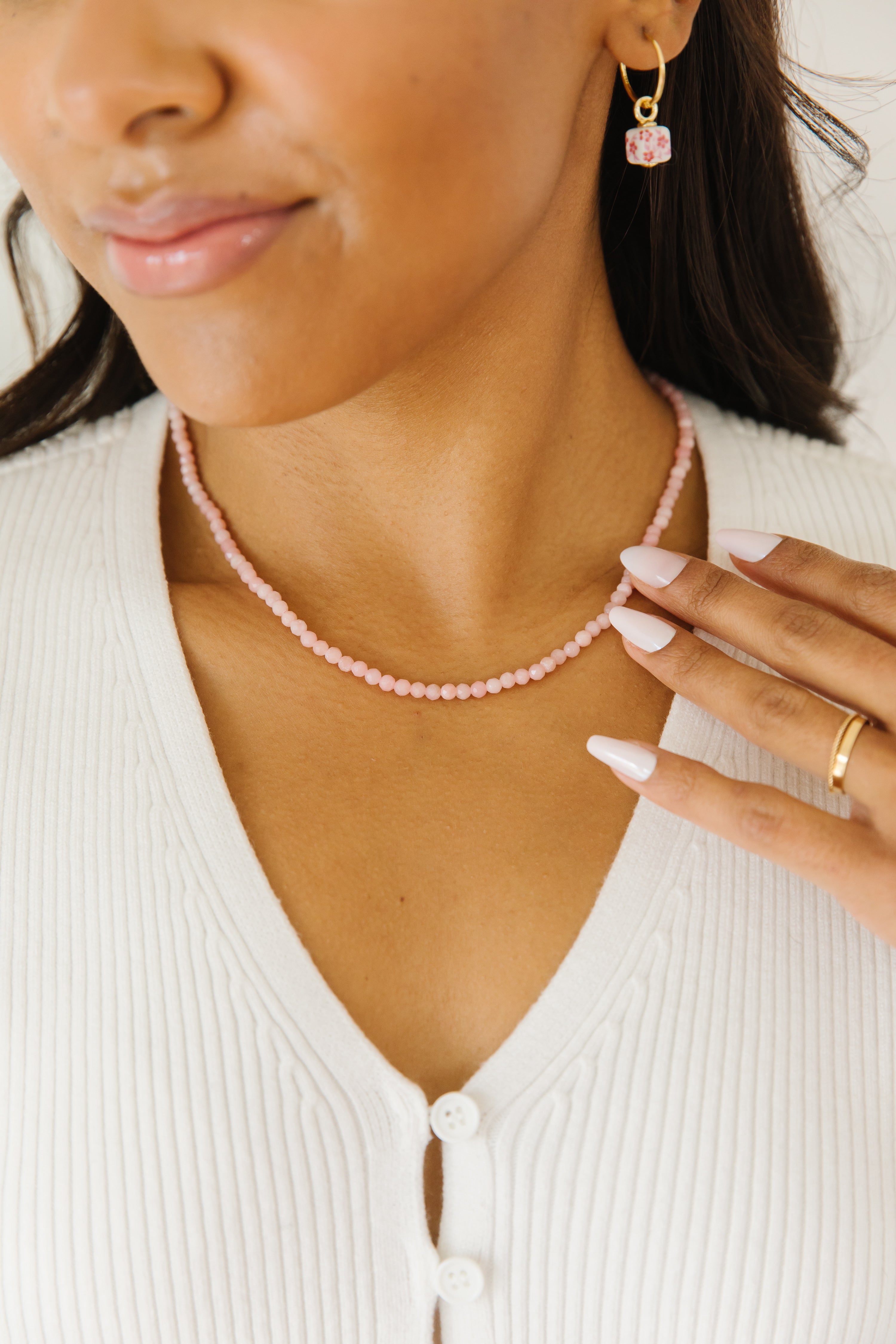 • Model is also wearing the Girlfriend necklace and Galentines Party earring charms.
