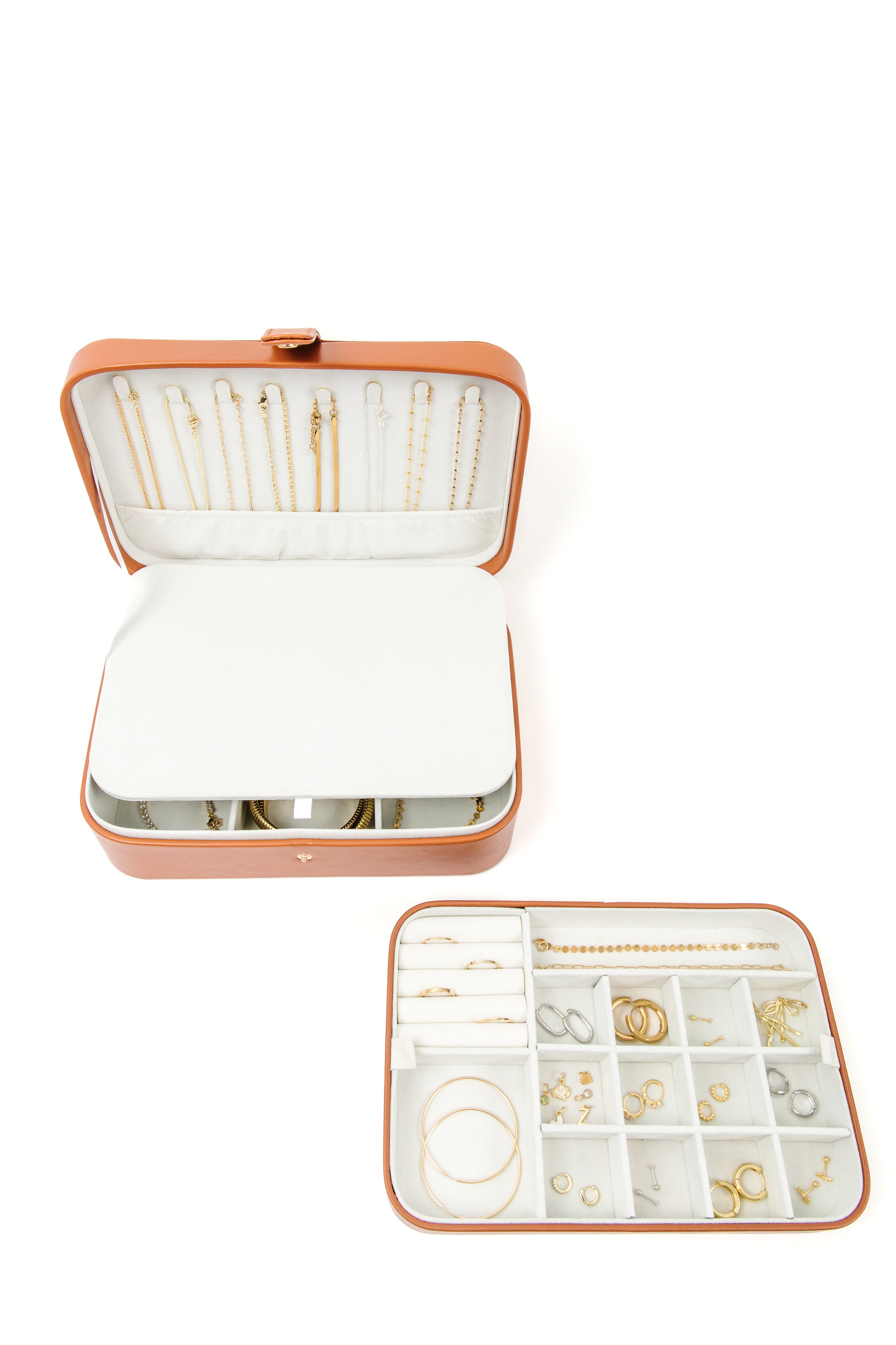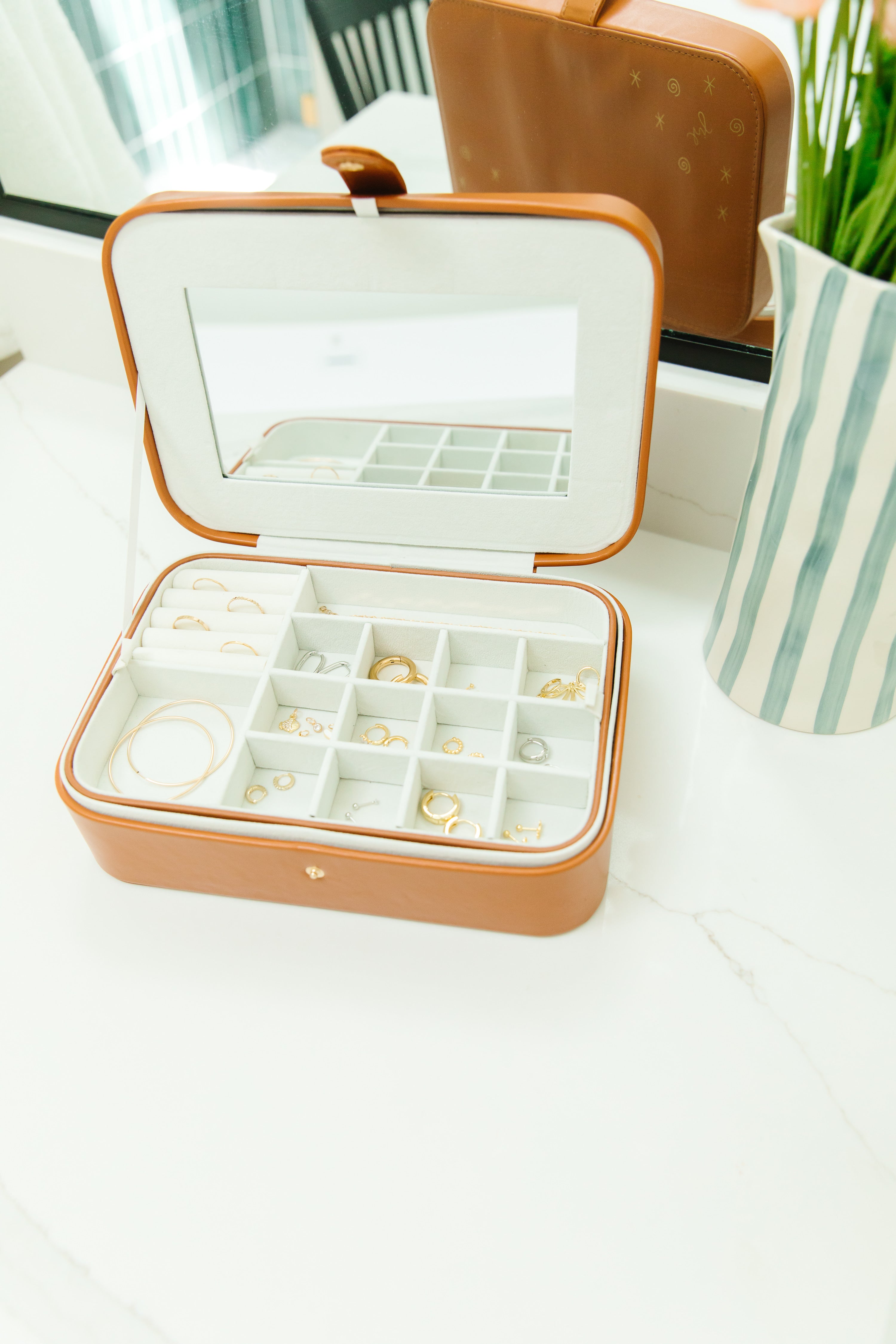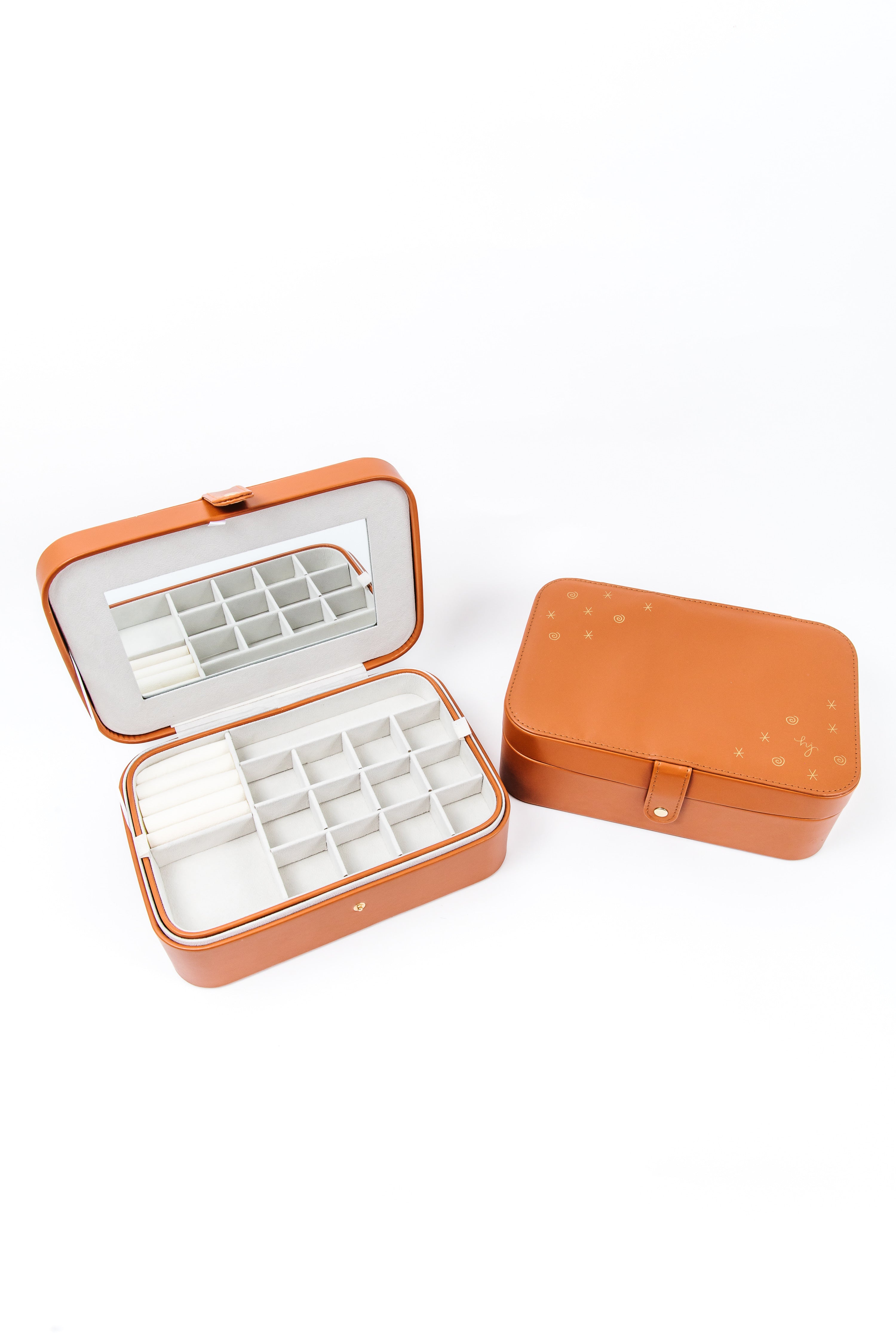 Oh no! We have a handful of our travel jewelry boxes that have small defects. We never want to send something that isn't the best of the best. These jewelry boxes may have small scuffs, mistakes in stamping, or slightly different in color. They are still completely functional just not perfectly aesthetic, and you know we're perfectionists. 💅