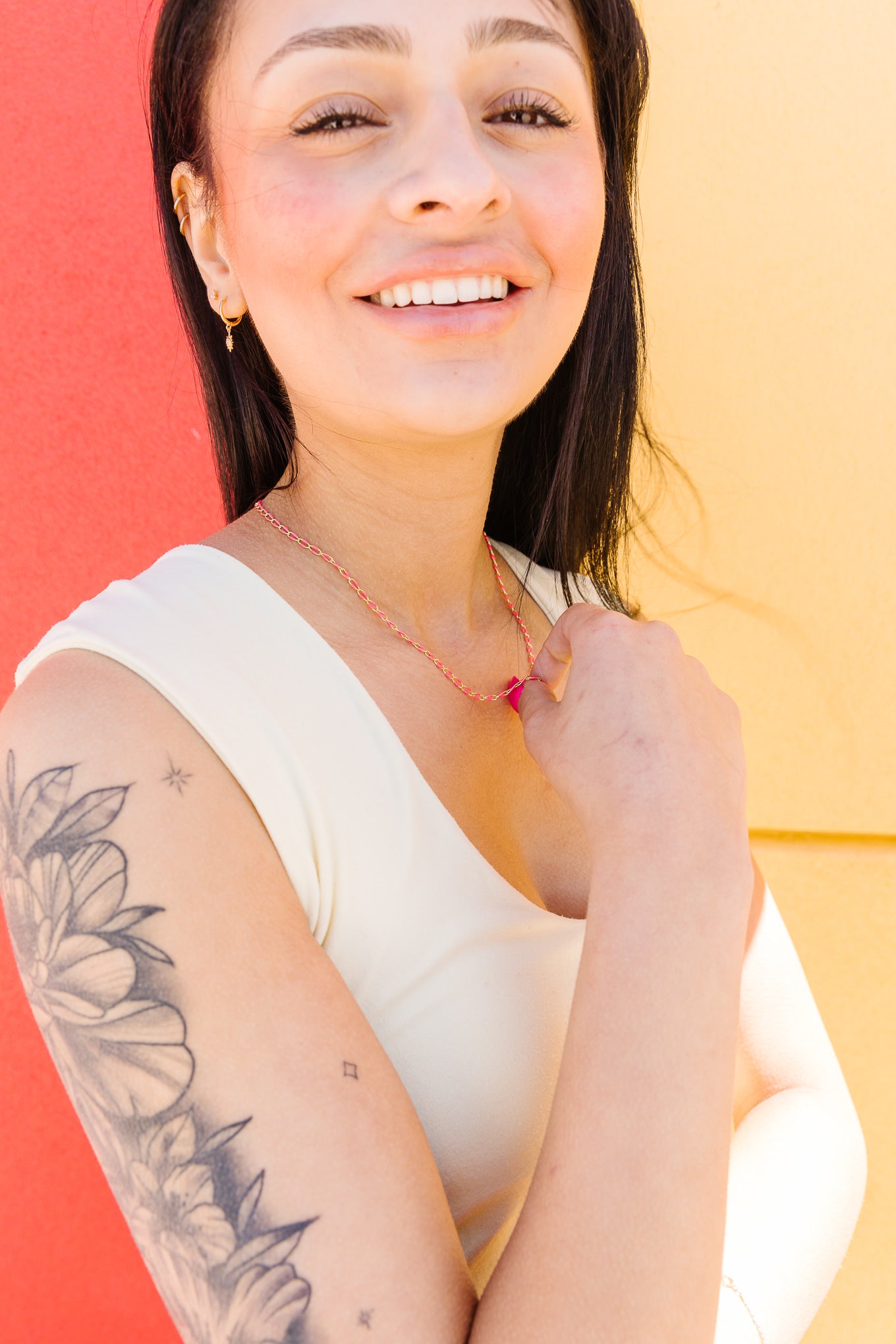 A companion to our sell out rainbow color chain, this hot pink chain screams summer.  Bright, vibrant, and full of life- let's go have some fun!
