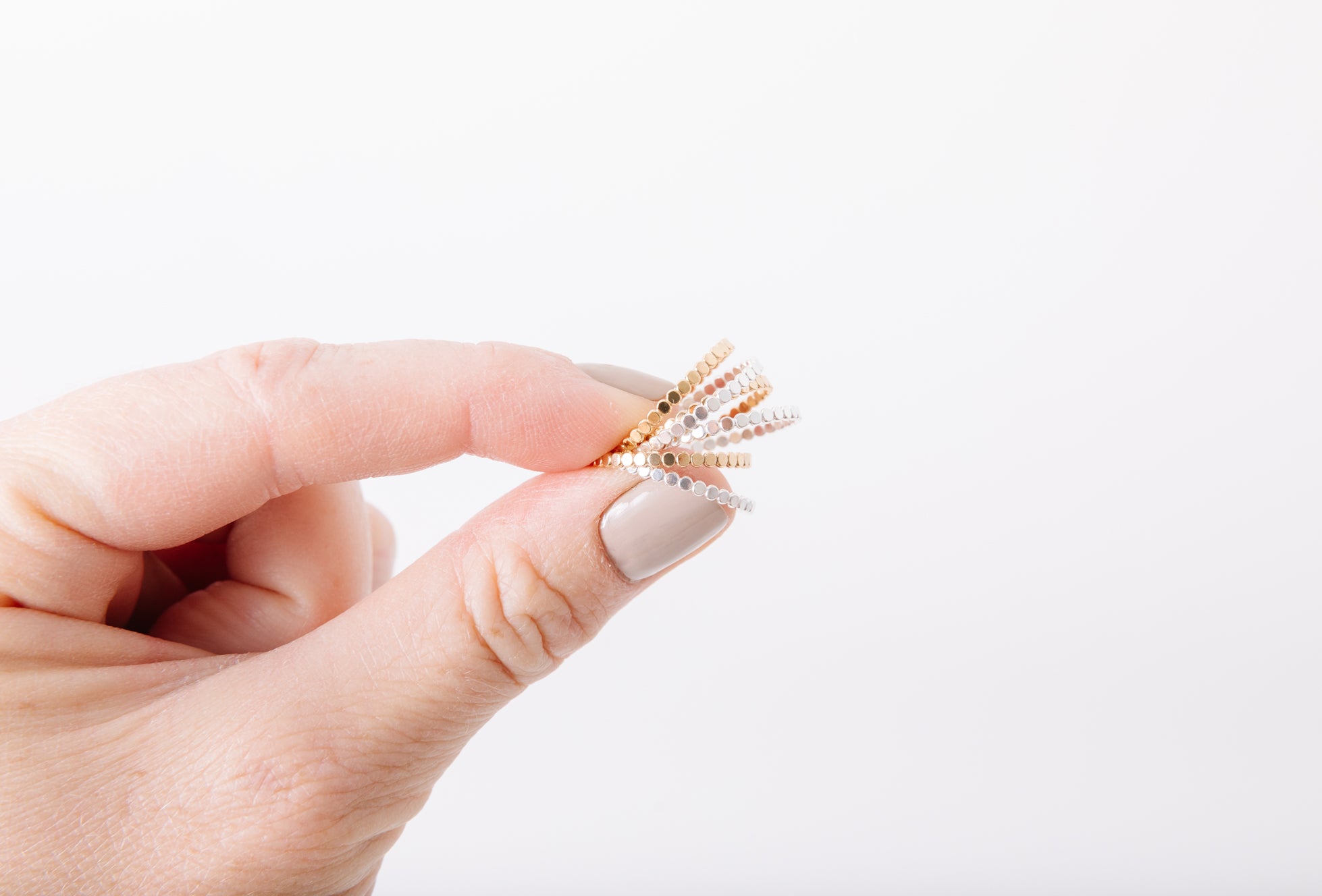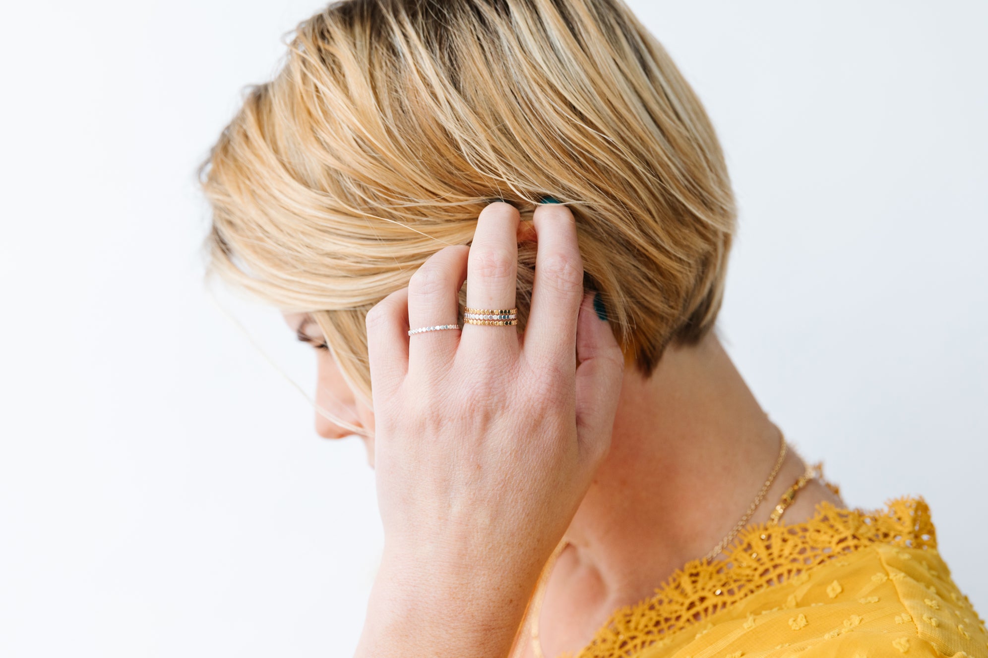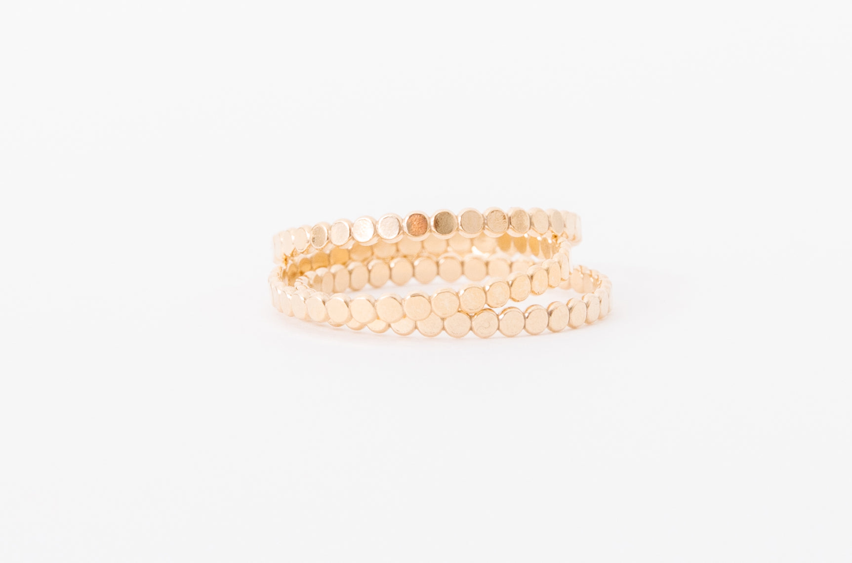 For durability, longevity, and affordability, we sell jewelry that is 14k gold-filled, vermeil, or sterling silver. Different than gold-plated, gold-filled jewelry is a layer of gold bonded through heat to a brass core. Vermeil is the same, but bonded to a a sterling silver core. These metals are durable, hypoallergenic, and tarnish resistant. Your pieces have the power to last a long time! When it comes to quality and durability, only solid gold can beat what we sell. Learn more.